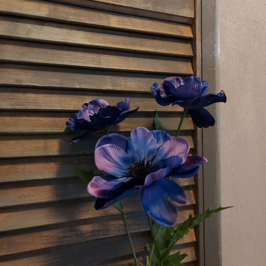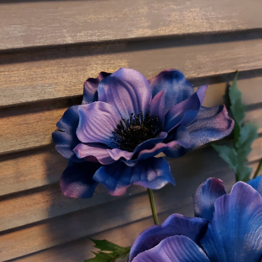 Laat je betoveren door de prachtige blauwepaarse bloemen van deze zijden Anemoon.