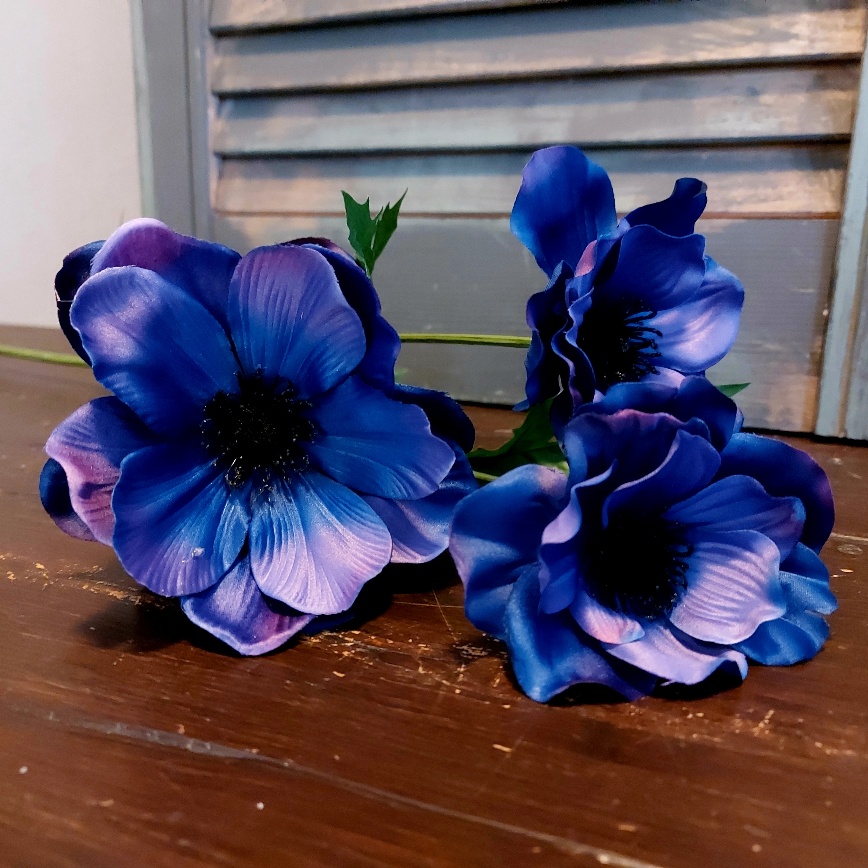 De intense blauwpaarse kleur van de Countryfield Anemoon kunstbloem valt zeker op in je vaas of boeket. De grote bloemen van de zijden Anemoon hebben een prachtig kleurverloop. Een Anemoon is perfect te verwerken in een mooi veldboeket. De bloemsteel is voorzien van drie grote bloemen