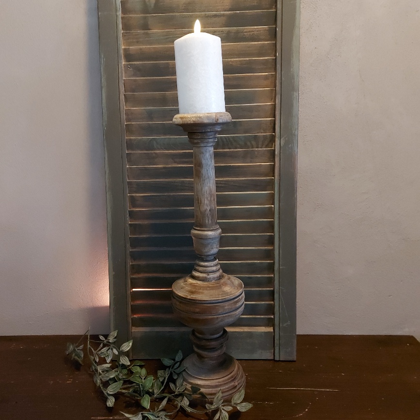 Baluster kandelaar van hout – Lichtbruin – H.50cm