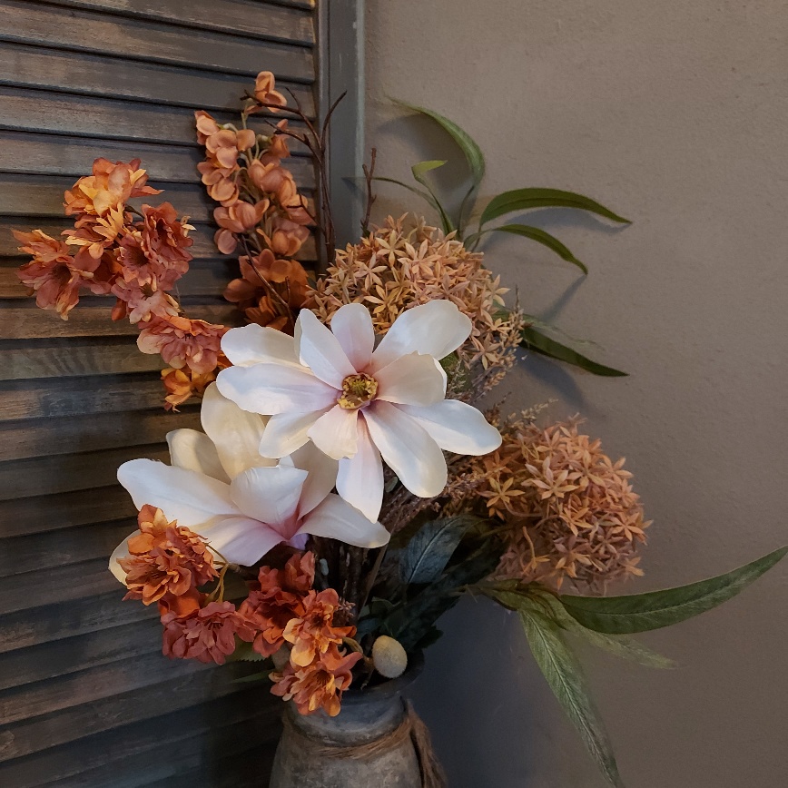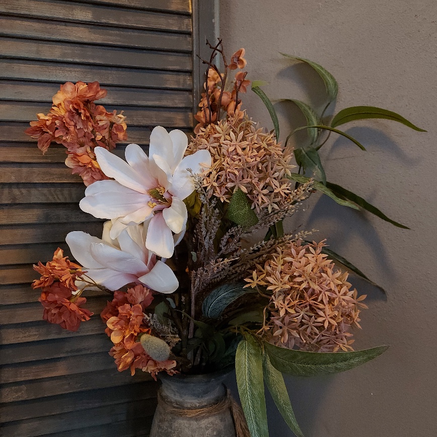 Dit bloemstuk wordt op maat gemaakt in de vaas bij je geleverd. Het enige wat jij nog hoeft te doen is een mooi plekje vinden om deze vaas met zijden bloemen weg te zetten.