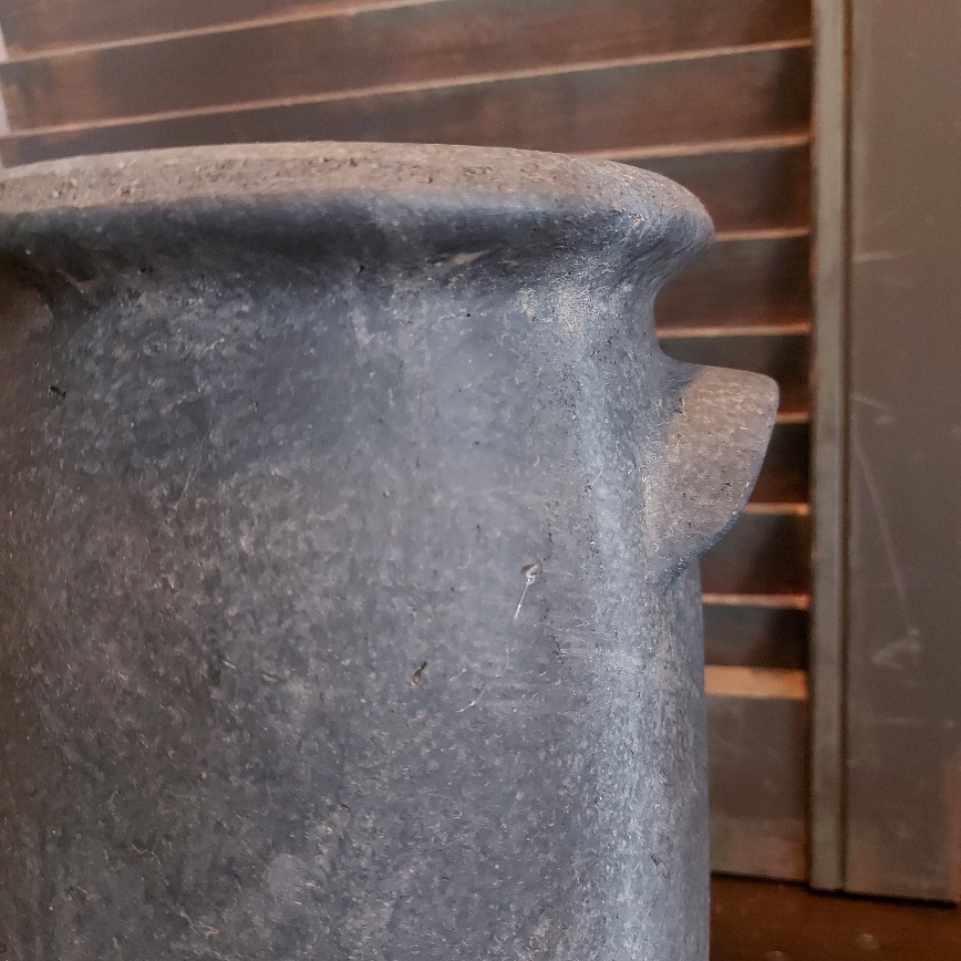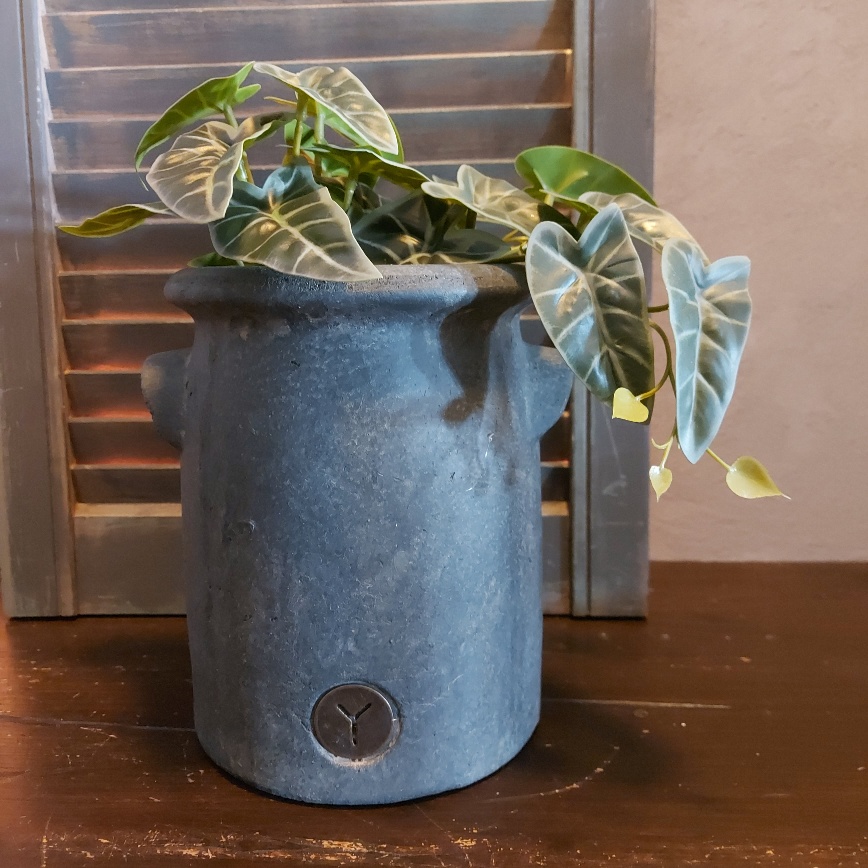 De bloempot Coulogne heeft een de bovenzijde twee decoratieve oren. De pot uit de serie Majestic Vintage is gemaakt van aardewerk en heeft een stoere betonlook.