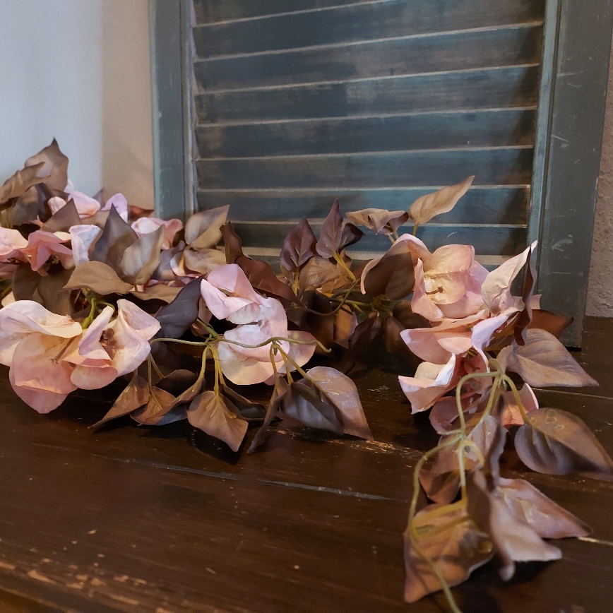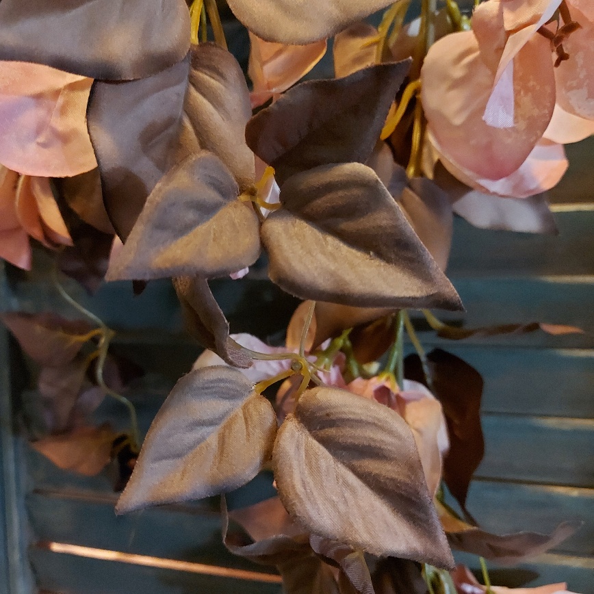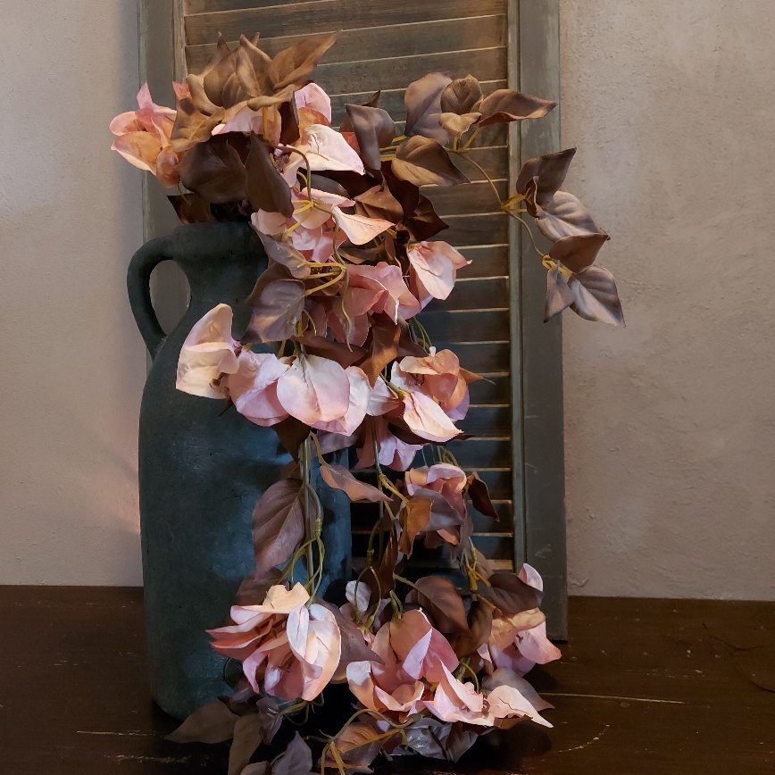 De twijg splitst zich op in 5 takken van verschillende lengtes. Elke tak is rijk gevuld met oud roze bloemen gecombineerd met bordeauxrood blad. De Bouganvillea is perfect om te gebruiken als hangplant.