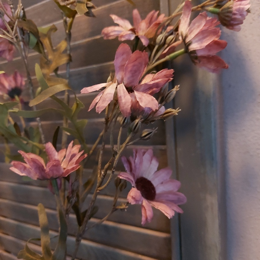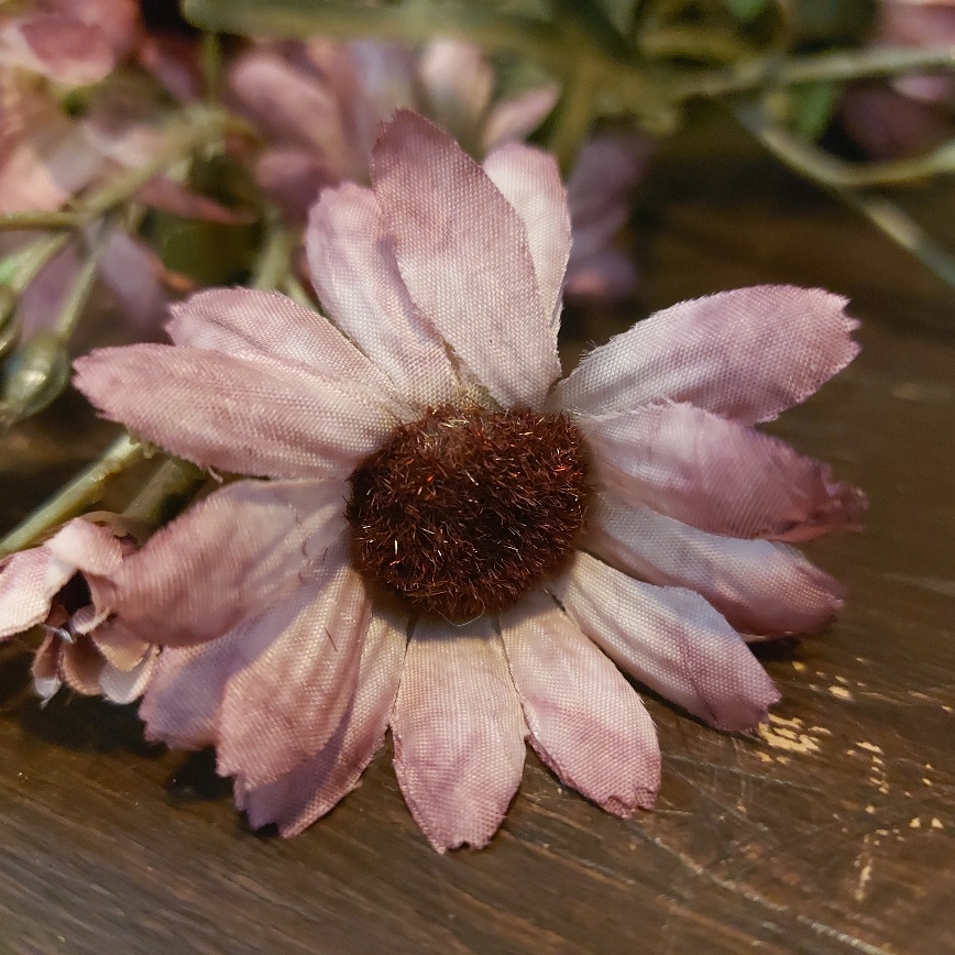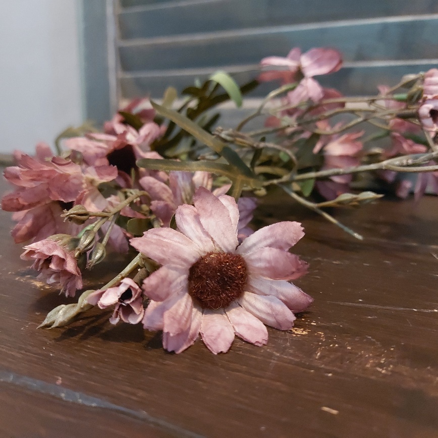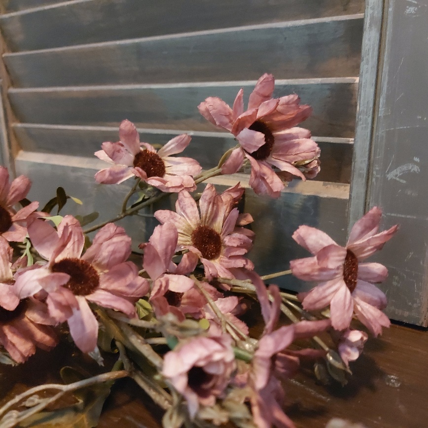 De Brynxz Chrysant zijdenbloem is rijk gevuld met bloemen in een paarse kleur. De steel splitst zich op in meerde zijtakken waaraan diverse bloemen zitten in verschillende stadia van bloei.