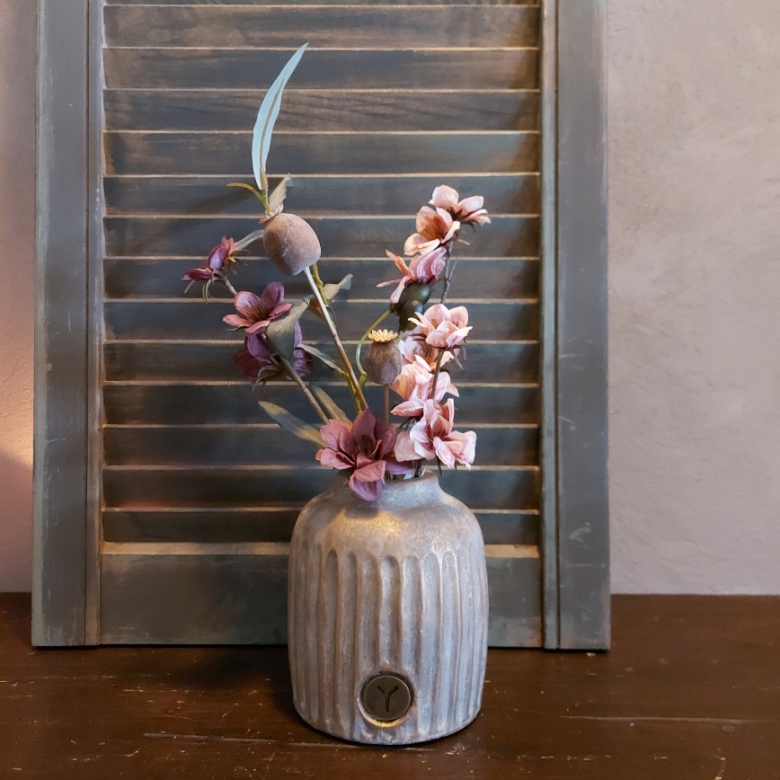 Een ruime collectie zijden en kunstbloemen om de vaas mee te vullen is ook bij ons verkrijgbaar. De vaas is gemaakt van aardewerk, hierdoor is hij niet geschikt om te vullen met water.