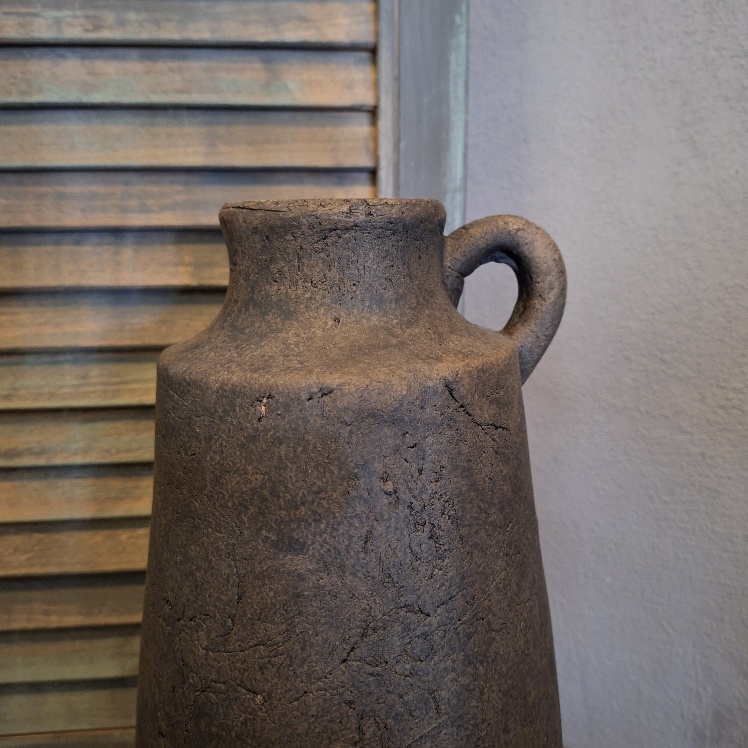 De Brynxz kruik Conic M uit de serie Majestic Brown heeft een strakke vormgegeven en aan de bovenzijde een klein oor. De fles is gemaakt van aardewerk en heeft een gemรชleerde bruine kleur. Omdat de kruik is gemaakt van aardewerk is hij niet geschikt om te vullen met water.