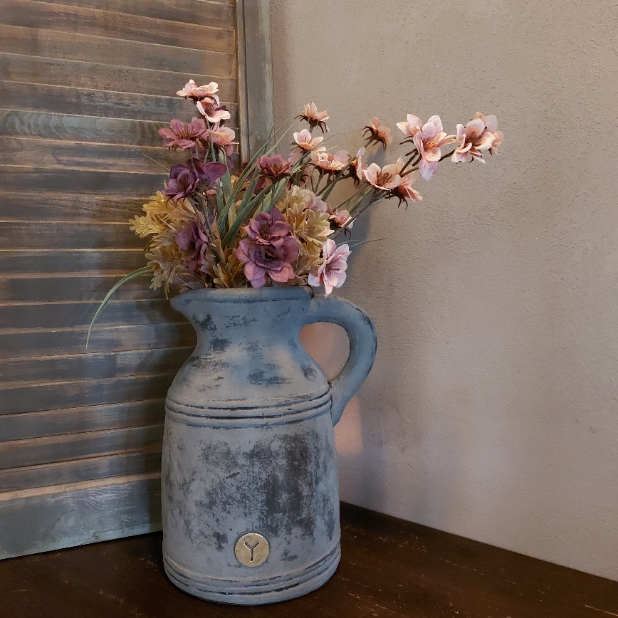 Omdat de schenkkan is gemaakt van aardewerk is deze niet geschikt om te vullen met water. Heb je nog geen bloemen in huis om de vaas mee te vullen. Kijk dan eens naar de collectie kunstbloemen van Brynxz, deze zijn prachtig om te zien en wel heel erg makkelijk om te onderhouden!