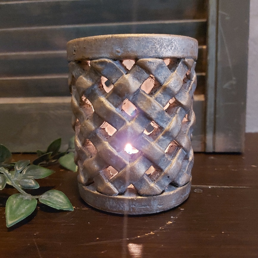 Het licht van je kaarsje komt mooi door de openingen in de kandelaar naar buiten.