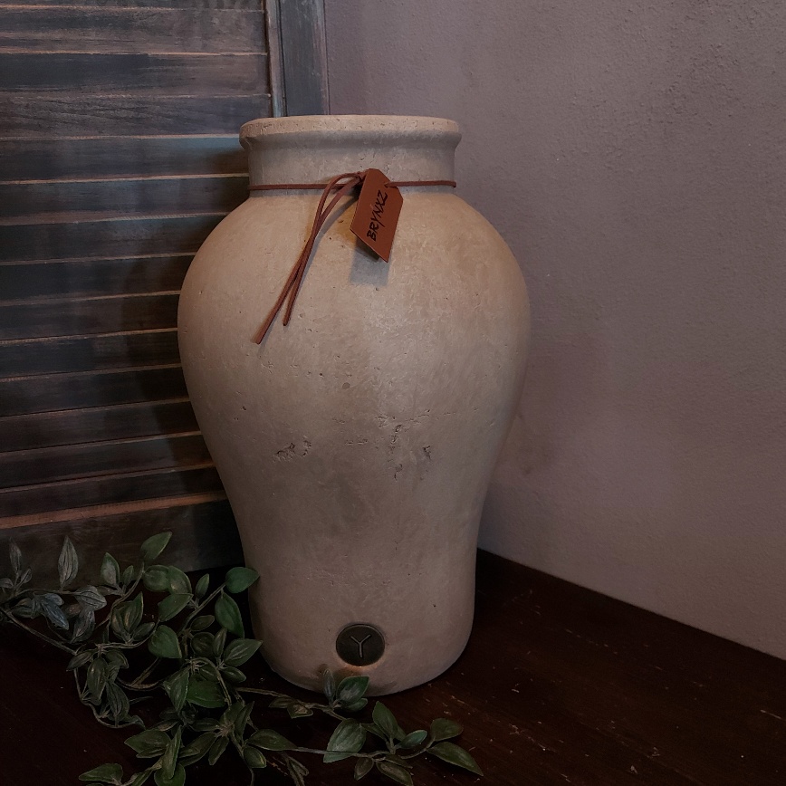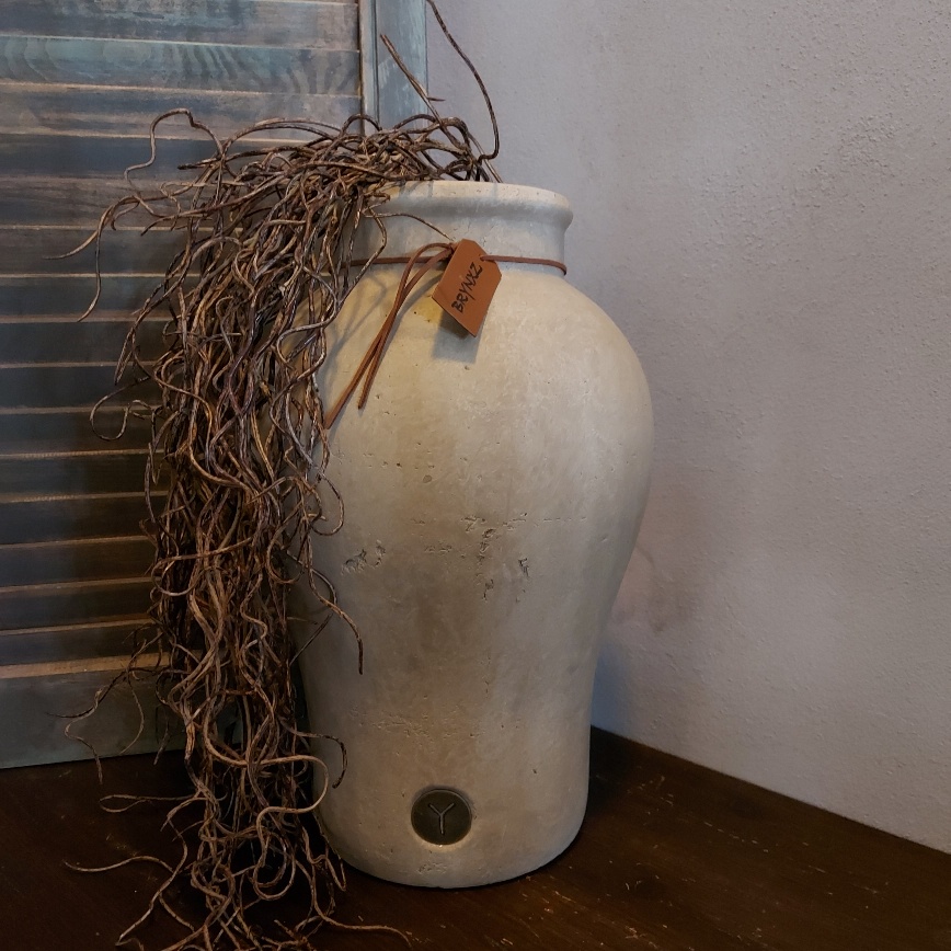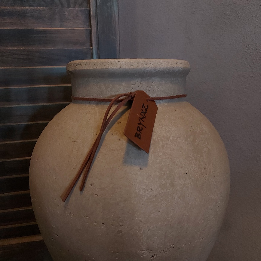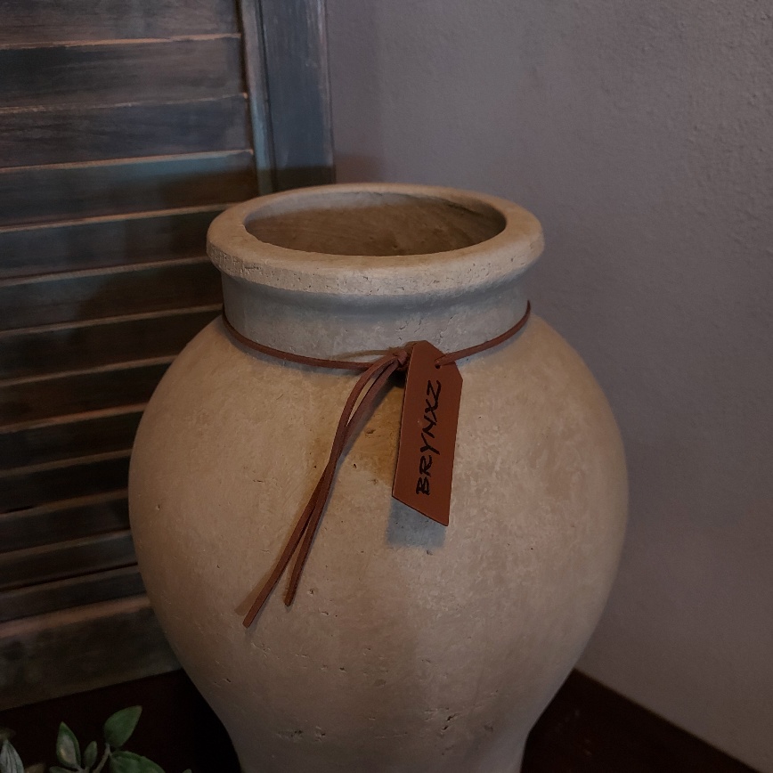 Brynxz vaas ‘Allure’ uit de serie Majestic Taupe. Deze landelijke bloemenvaas is gemaakt van aardewerk en afgewerkt in een zachte taupe kleur. Om de hals van de pot zit een lederen koord met daaraan een label met het Brynxz logo.
