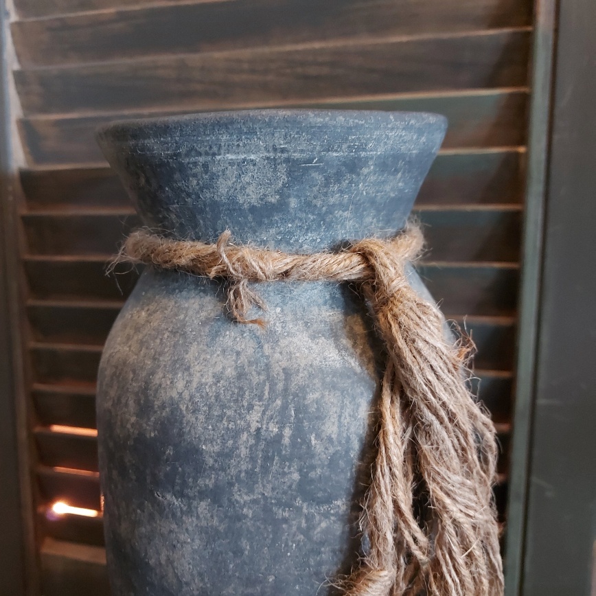 De Brynxz vaas ‘Grandeur’ uit de serie Ancient Clay is vormgegeven in een model dat recht naar beneden loopt. Als landelijk detail is rondom de hals van de Brynxz vaas een dik gerafeld jute touw geknoopt. Elk exemplaar is met de hand bewerkt. De kleur nuances zijn per kruik verschillend.