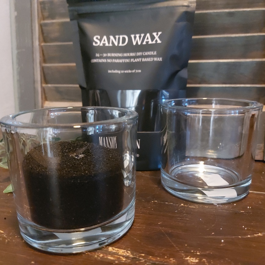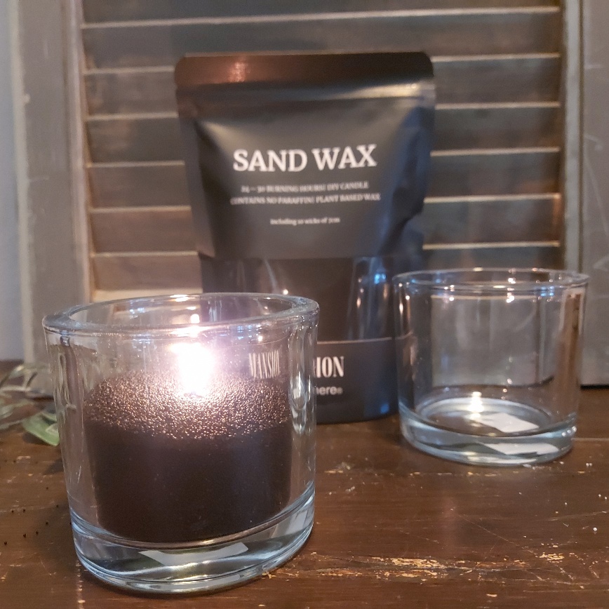 Met Sand Wax maak je zelf je eigen kaars. Het kaarsenzand heeft een zwarte kleur en er zit 200 gram in een zak. Schenk wat kaarsenzand uit de zak in het mee geleverde sfeerglas en klaar ben je al… lontje erin en genieten maar!