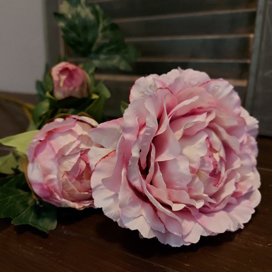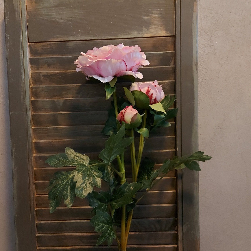 Wat een plaatje is deze schitterende Countryfield Chinese pioenroos zijdenbloem. De tak is voorzien 3 bloemen in verschillende stadia van groei. De zachte roze kleur komt in heel veel kleurnuances terug in de bloemen.