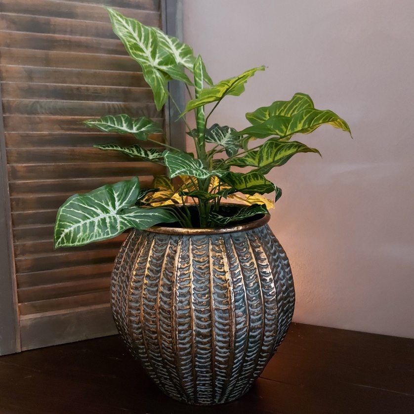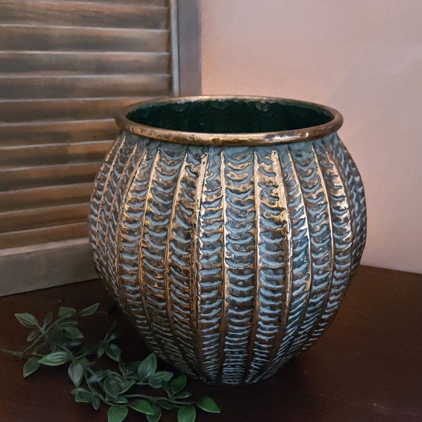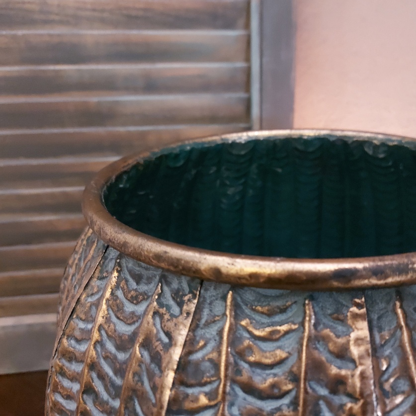 Decoreer je huis met deze prachtige Countryfield bloempot Josine S van metaal. De pot is bronskleurig met vintage groene accenten. Je kunt de bloempot vullen met planten maar de pot is ook te gebruiken voor kunstbloemen. Beiden zorgen voor een mooi effect. Kies je ervoor om echte planten in de vaas te plaatsen, doe dit dan met een binnenpot of bescherm de bloempot met een stuk plastic. Hierdoor blijft het metaal langer mooi. In de vaas zit een bijzondere structuur, weerkaatsing van licht geeft een ongekend mooi effect!