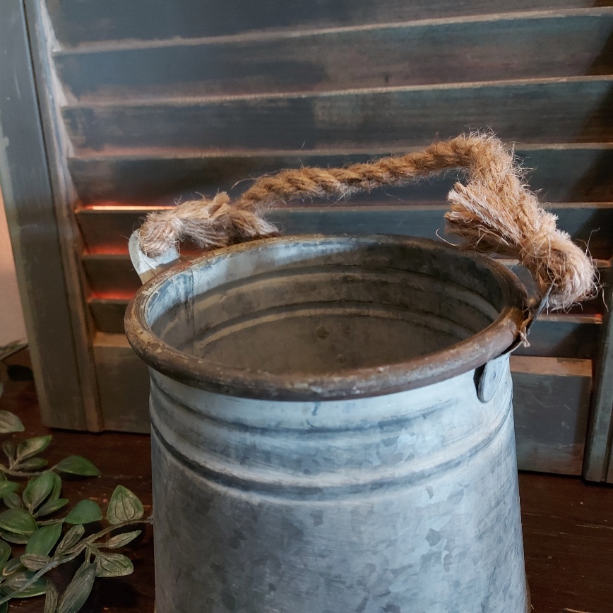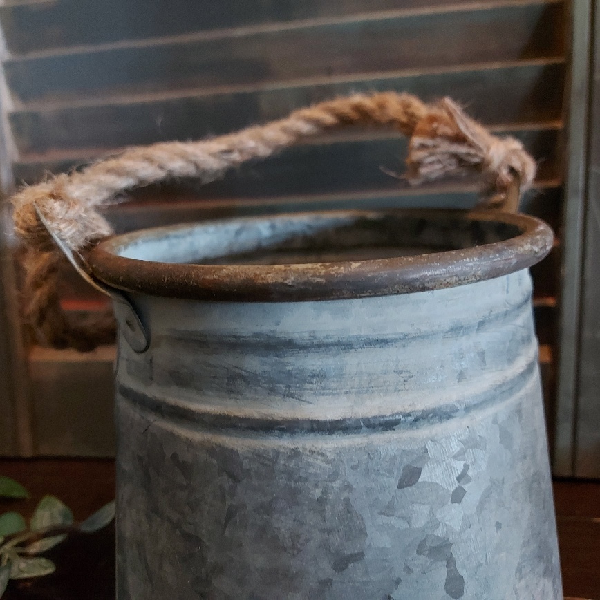 De zinken bloempot van Countryfield heeft als leuk detail een jute koord. Dit maakt het ook mogelijk om de pot op te hangen. De bloempot van zink heeft een vintage uitstraling en is hier en daar voorzien van roest.