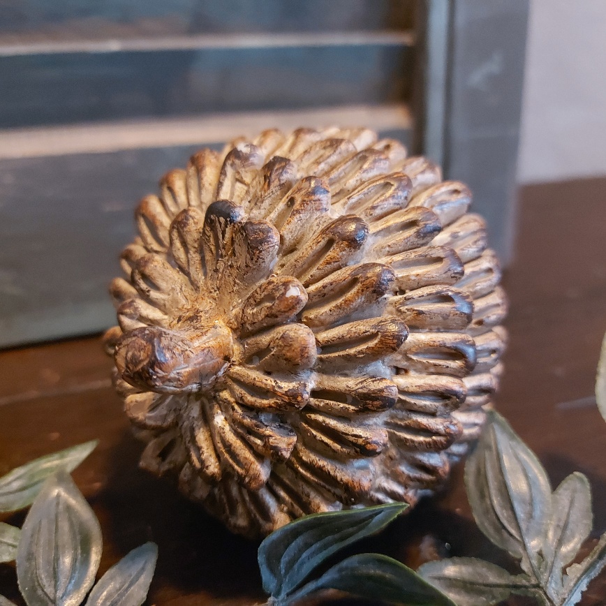Wat een fijne details heeft de Countryfield dennenappel Levi. Tientallen schubben vormen een prachtige dennenappel in warme bruine natuurlijke kleuren. En weet je wat helemaal handig is: de onderzijde is mooi vlak, zodat hij heel goed blijft liggen!