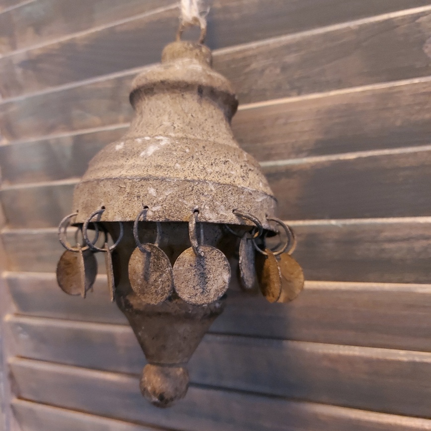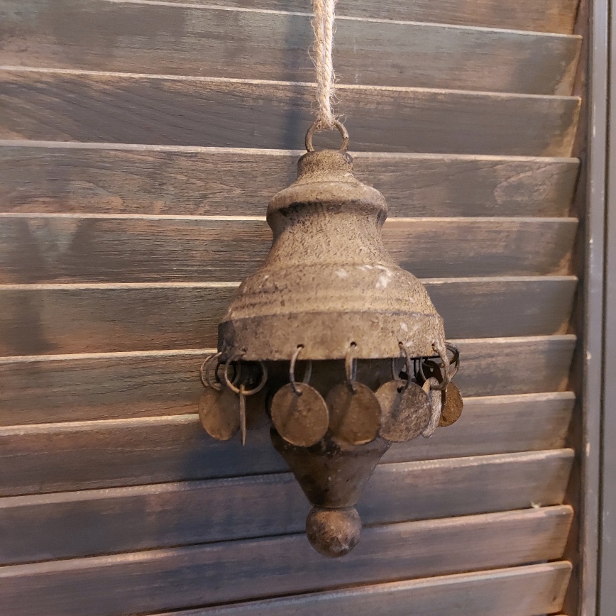Hangend ornament Amira van Countryfield heeft een mooie vintage uitstraling door het geroeste metaal. De hanger heeft een sierlijke rand met muntjes die vrolijk heen en weer wiebelen. Aan het oog van de hanger zit een jute koord.