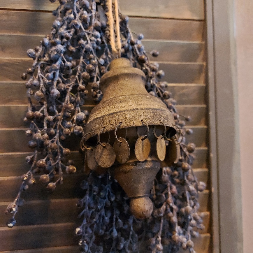 Deze originele decoratie van Countryfield heeft een perfecte brocante uitstraling. Niet alleen het geroeste metaal zorgt hier voor, ook de leuke muntjes aan het hangende ornament dragen hier aan bij.