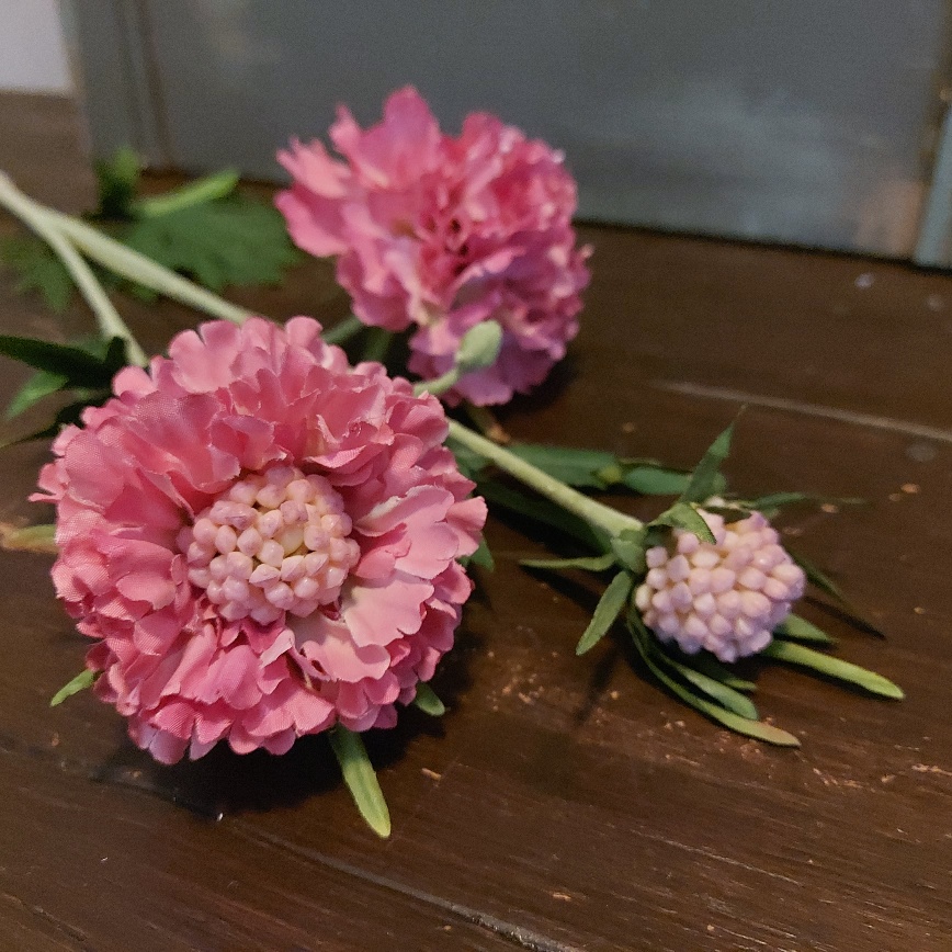 De heldere roze kleur van de Scabiosa valt gelijk op in een boeket. Maar ook in een leuk klein vaasjes komt deze bloem prachtig tot zijn recht.