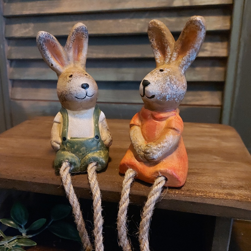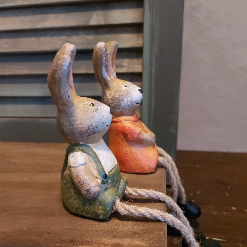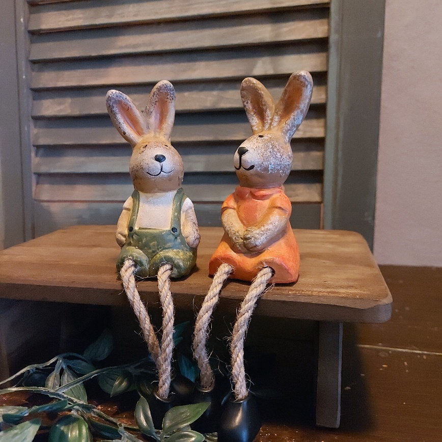 Wat zijn ze leuk samen! Dit setje haasjes met bungelbeentjes van Countryfield. Samen vormen ze een mooi koppeltje en zien ze er op hun Paasbest uit.