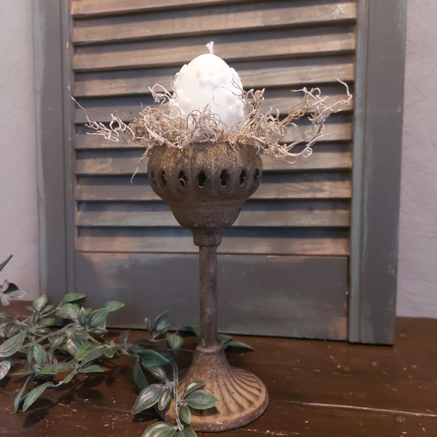 De brocante sfeer die het Countryfield sfeerlicht ‘Humpty M’ heeft, past perfect in het landelijk ingerichte huis. De theelichthouder is gemaakt van metaal en heeft een roestige uitstraling. Hij staat lekker stevig door zijn ronde metalen voet. De Countryfield kandelaar is op verschillende manieren te decoreren.