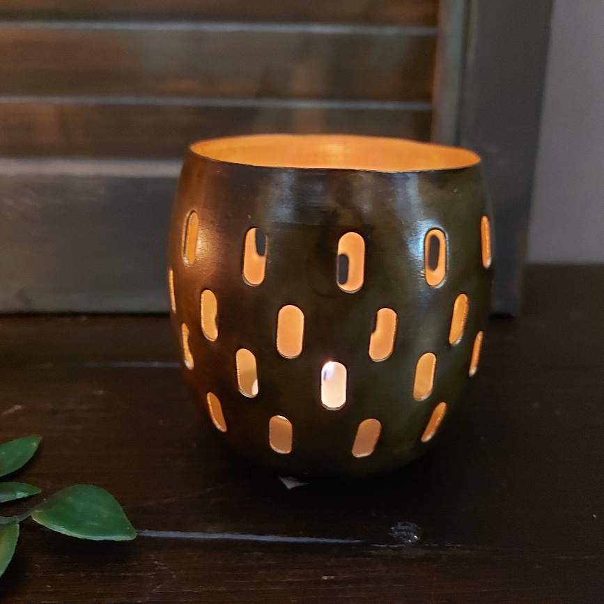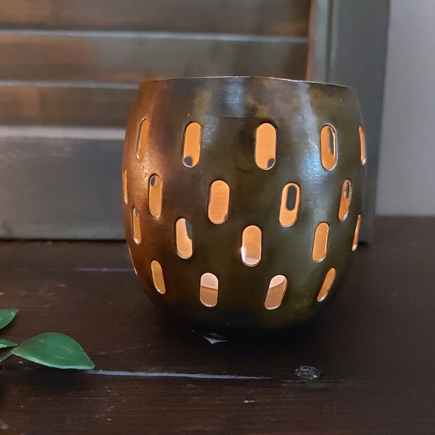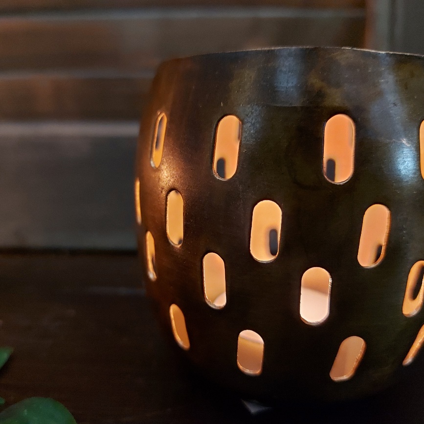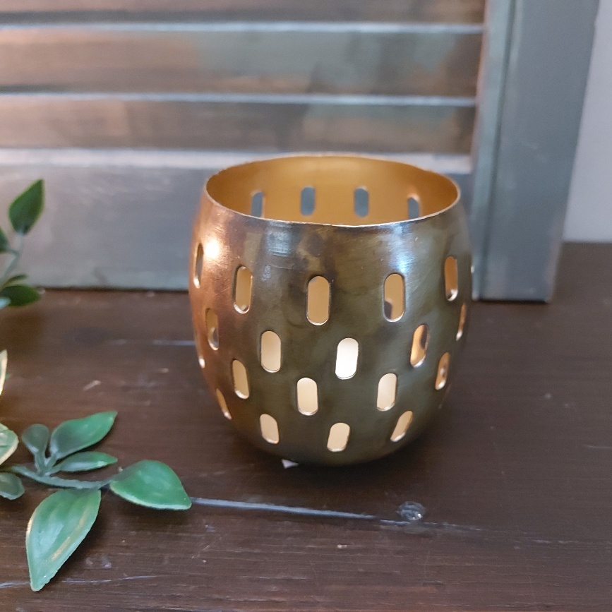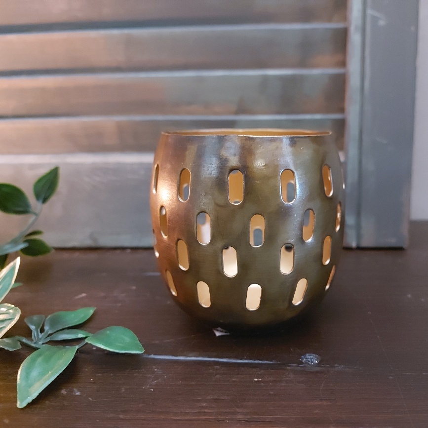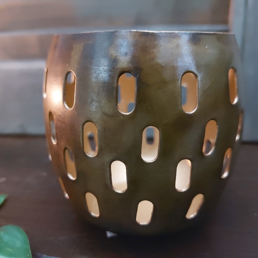 Het kaarslicht schijnt mooi naar buiten door deze theelichthouder van metaal.