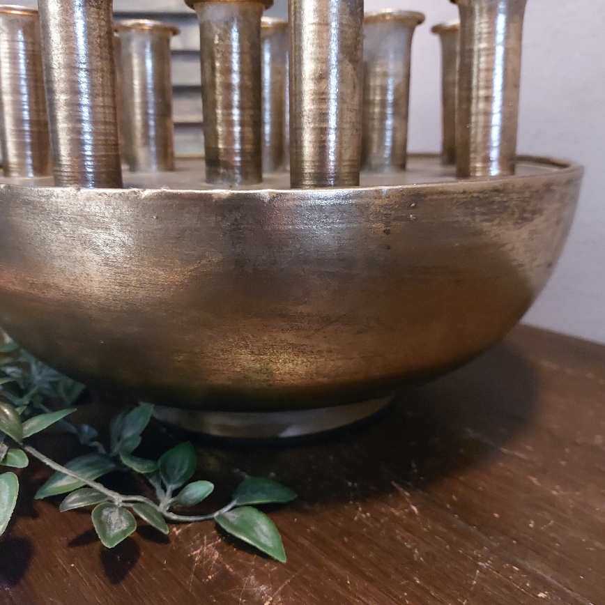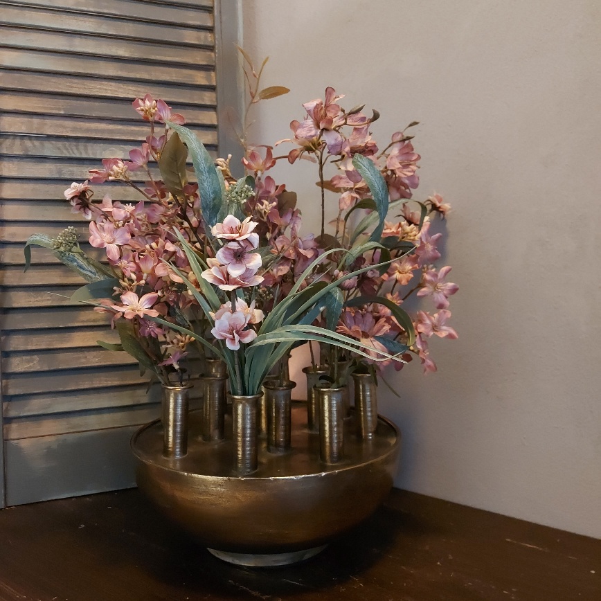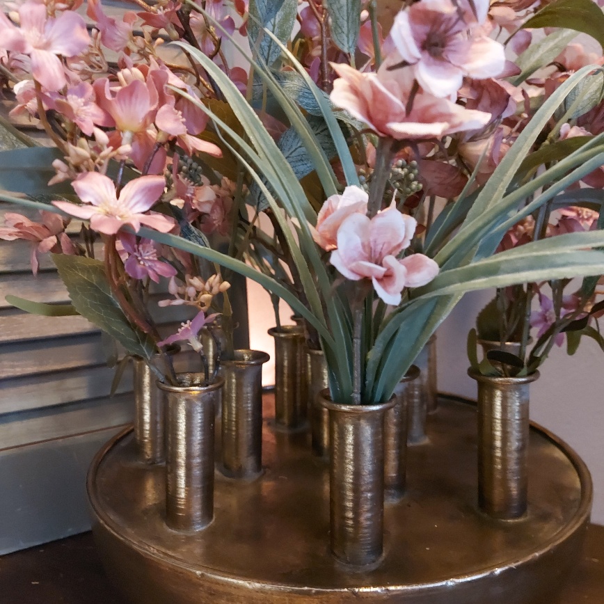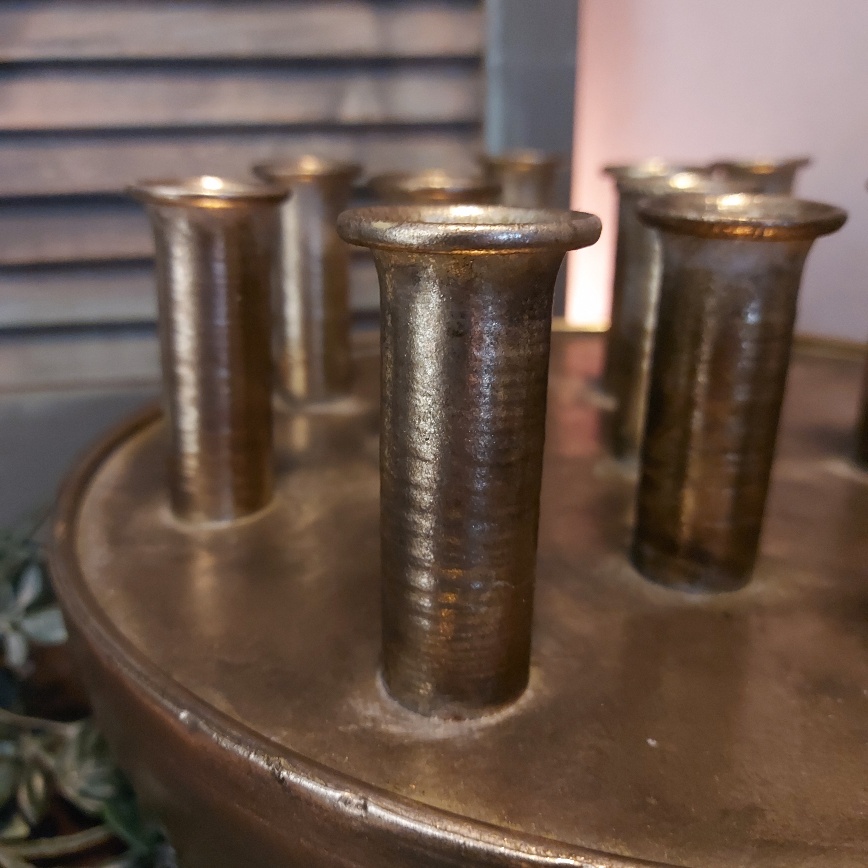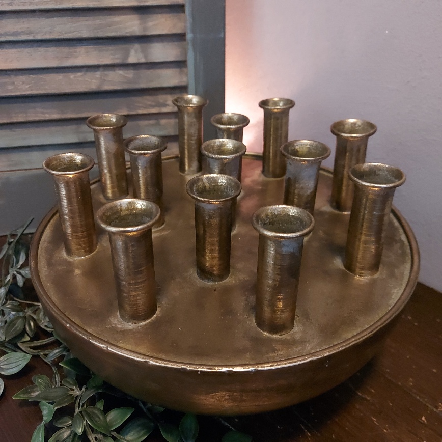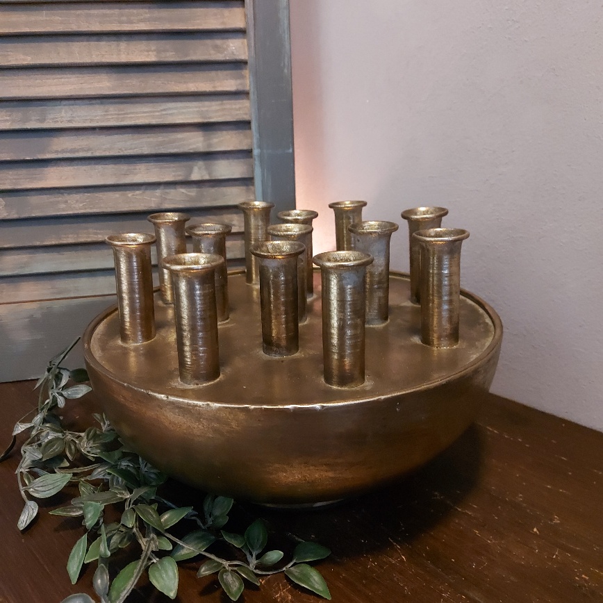 Maar liefst 13 openingen heeft de Countryfield tuitvaas Hendrika. Dit prachtige exemplaar is gemaakt van metaal en heeft een warme brons kleur. Dit model vaas staat ook wel bekend als tulpenvaas. Omdat de vaas is gemaakt van metaal is het beter om hem niet te vullen met water. Laat je fantasie de vrije loop en creëer een mooi boeket in deze bijzondere Countryfield vaas.