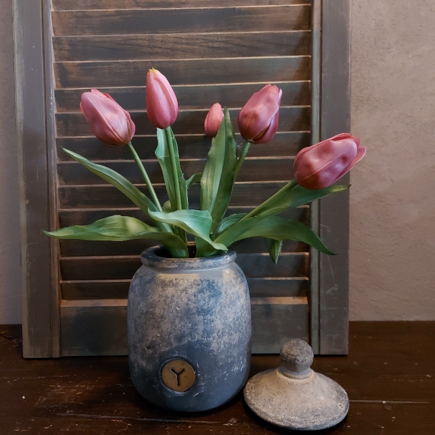 Haal het voorjaar in huis met een bosje van 5 Countryfield tulpen in een donker roze kleur. Het bosje kunst tulpen bestaat uit drie tulpen die open zijn en twee tulpen met de bloem in knop. De tulp heeft een donker roze kleur, in verschillende kleurnuances.