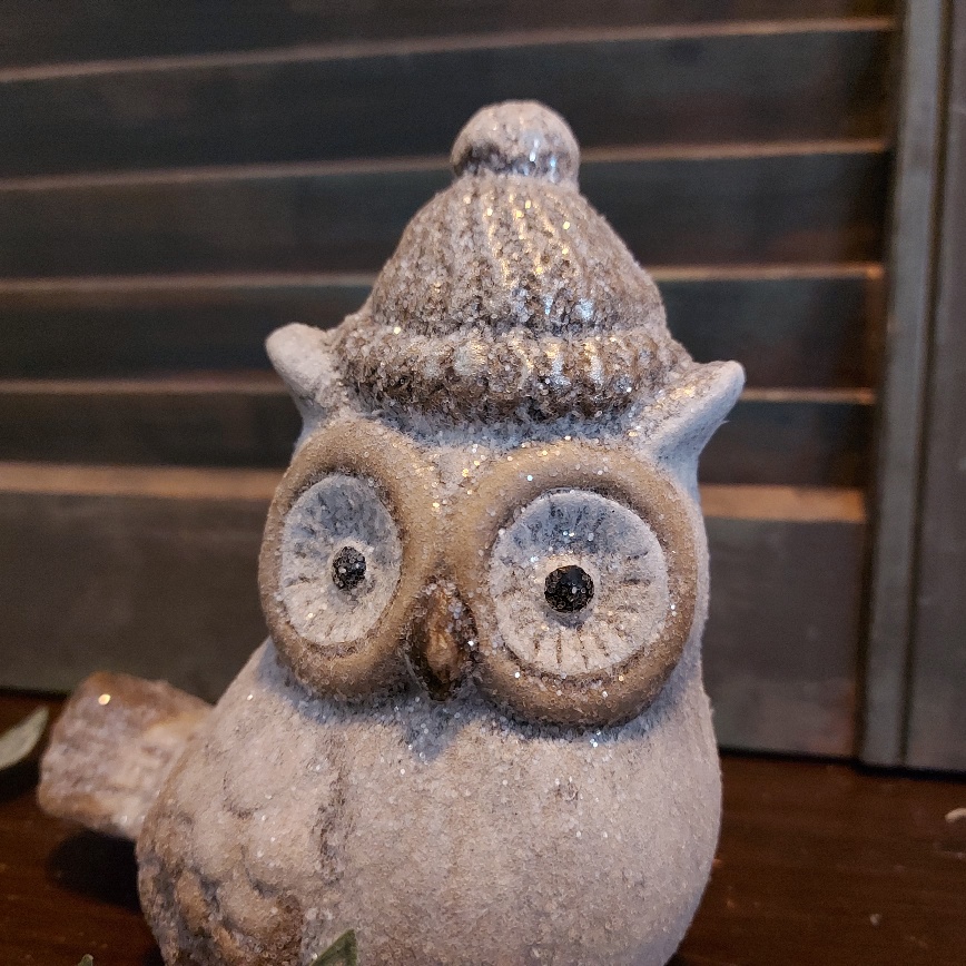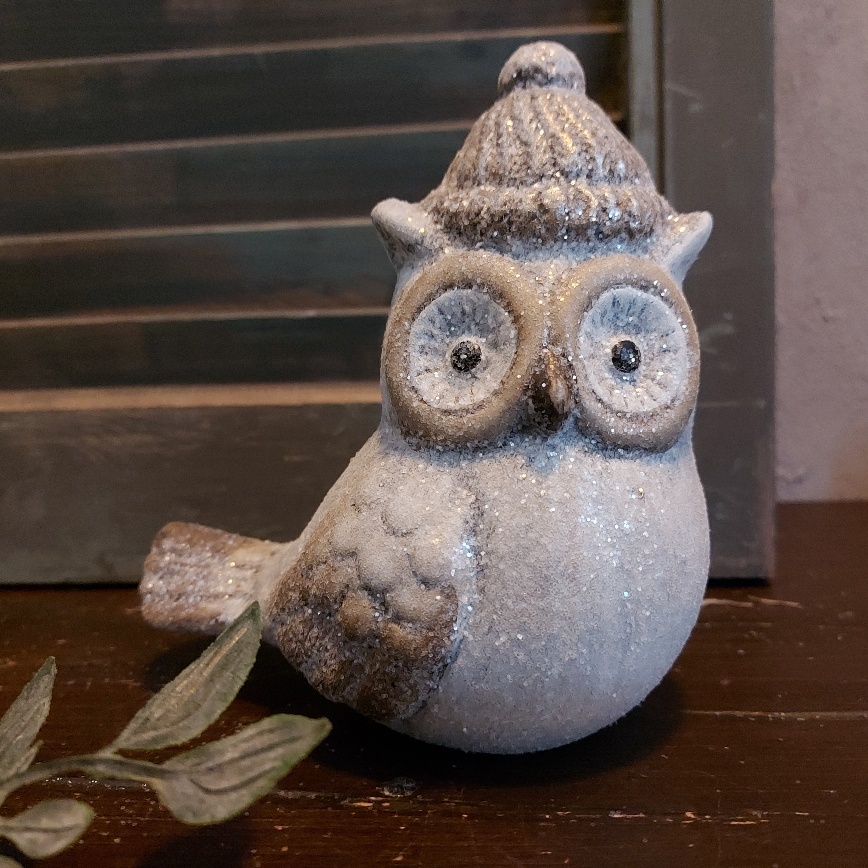 Dit lieve uiltje heeft prachtige details en is afgewerkt in zachte winterse pastelkleuren.