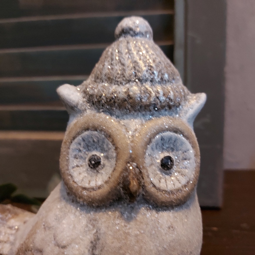 Uilen staan symbool voor wijsheid. Deze prachtige Countryfield uil heeft zijn staart naar links en op zijn kop staat een warm gebreide muts. De decoratieve uil heeft een winterse sfeer en is voorzien van glanzende glitters. Het aardewerk is bewerkt met zachte pasteltinten. De uil is ook verkrijgbaar met zijn staart naar rechts.