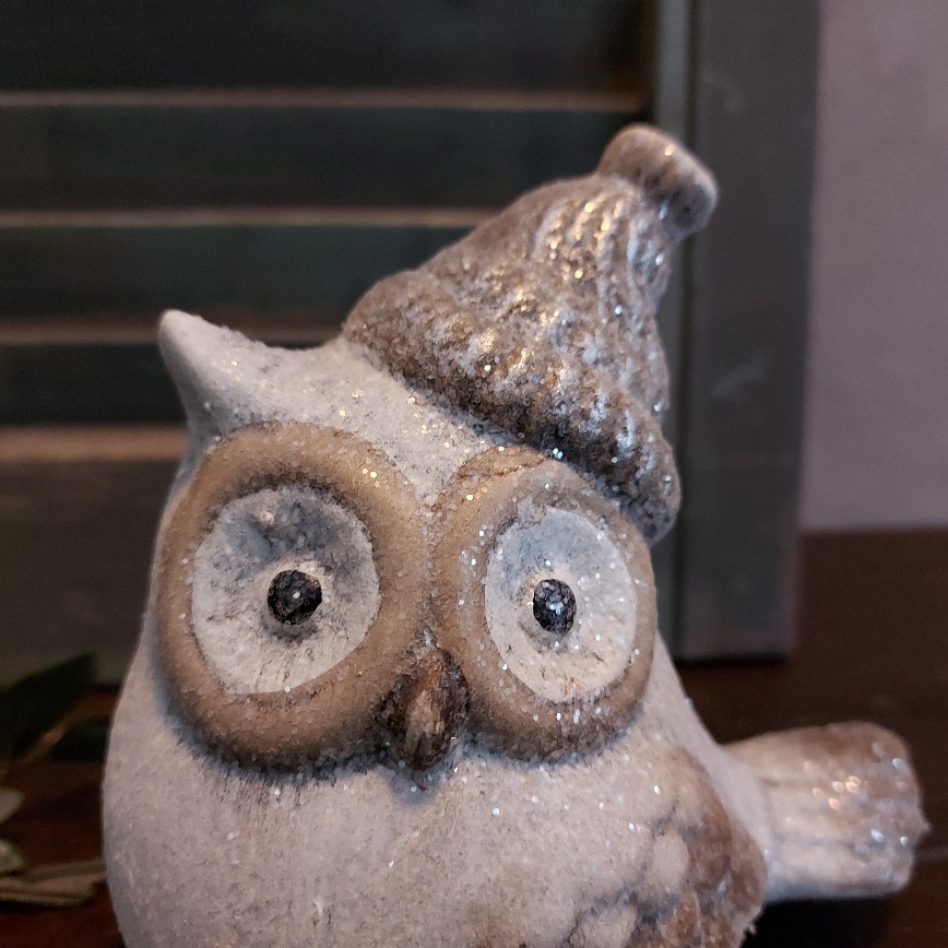 Dit lieve uiltje heeft prachtige details en is afgewerkt in zachte winterse pastelkleuren.