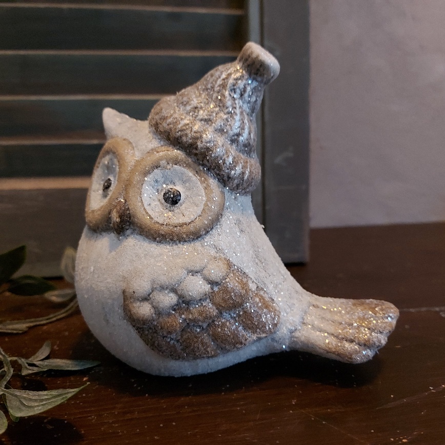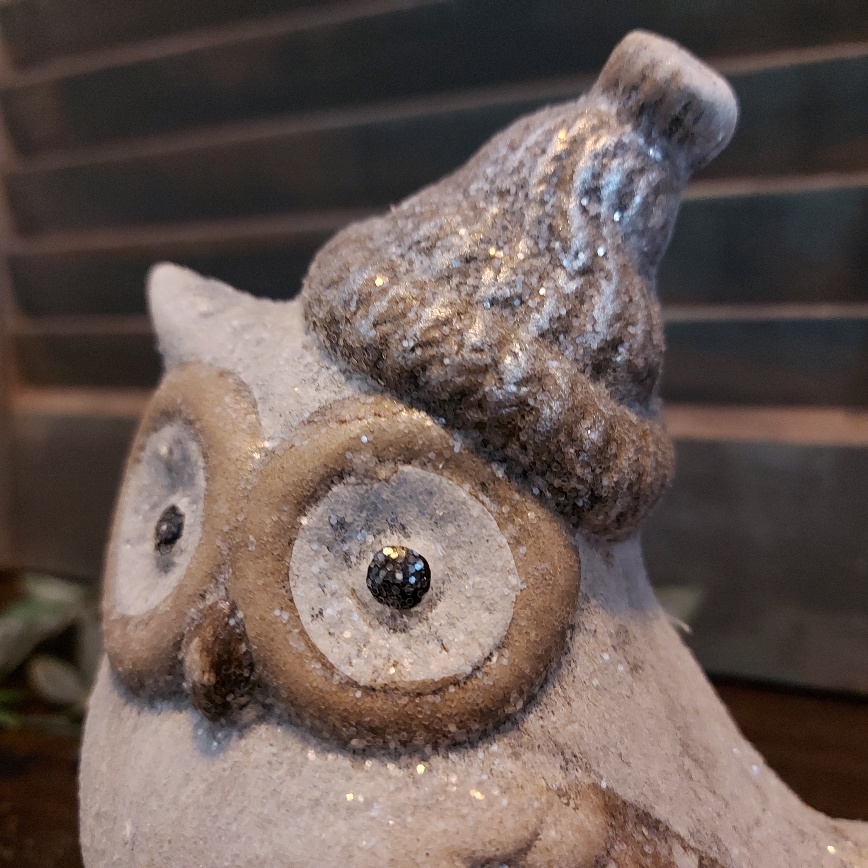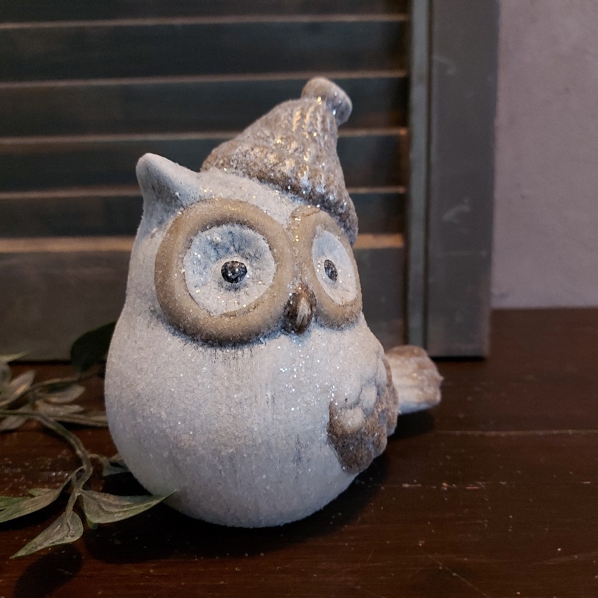 Uilen staan symbool voor wijsheid. Deze prachtige Countryfield uil heeft zijn staart naar rechts en op zijn kop staat een warm gebreide muts. De decoratieve uil heeft een winterse sfeer en is voorzien van glanzende glitters. Het aardewerk is bewerkt met zachte pasteltinten. De uil is ook verkrijgbaar met zijn staart naar links.