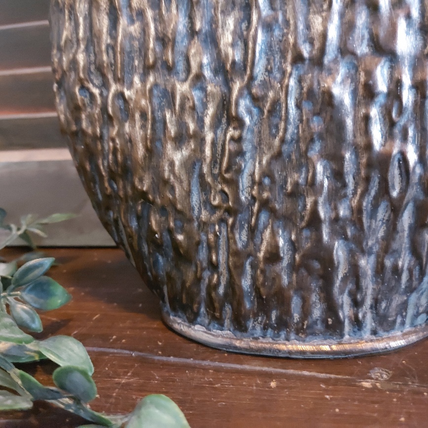 Decoreer je huis met deze prachtige Countryfield ovale vaas van metaal. De pot het een brons kleur en is voorzien van een leuk reliรซf.ย De Countryfield ovale vaas is zowel te vullen met kunstbloemen als met een plant. Kies je ervoor om echte planten in de pot te plaatsen, doe dit dan met een binnen pot of bescherm de bloempot met een stuk plastic. Hierdoor blijft het metaal langer mooi.