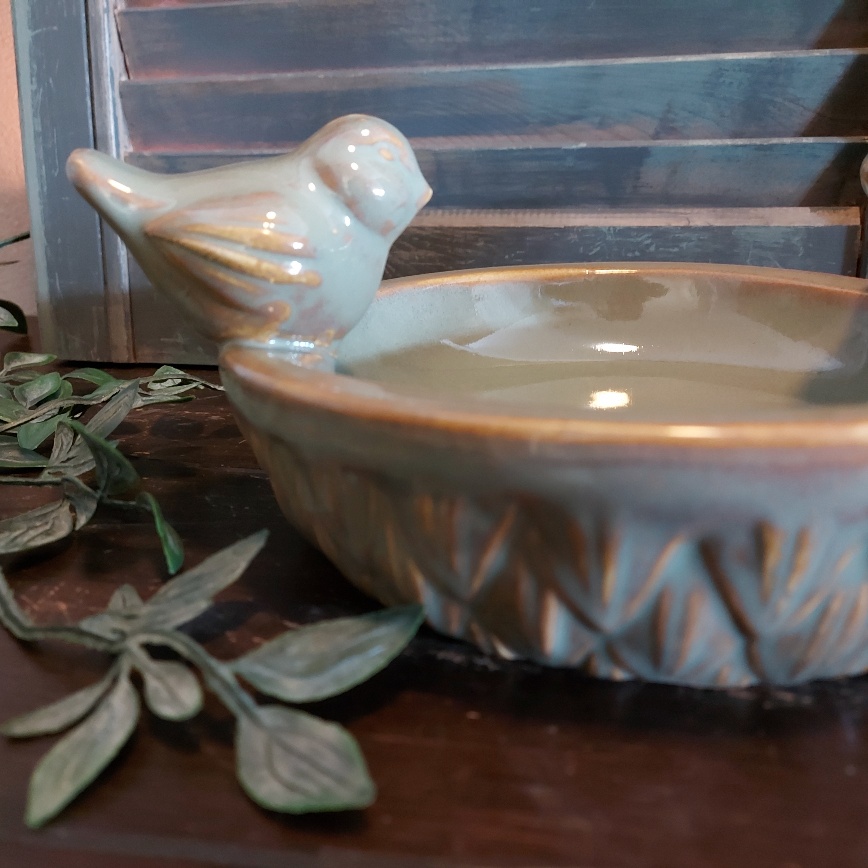 In de winter is deze keramieken schaal te gebruiken als voederschaal. Als het mooi weer wordt tover je hem om tot een badje en een schaal om uit te drinken.