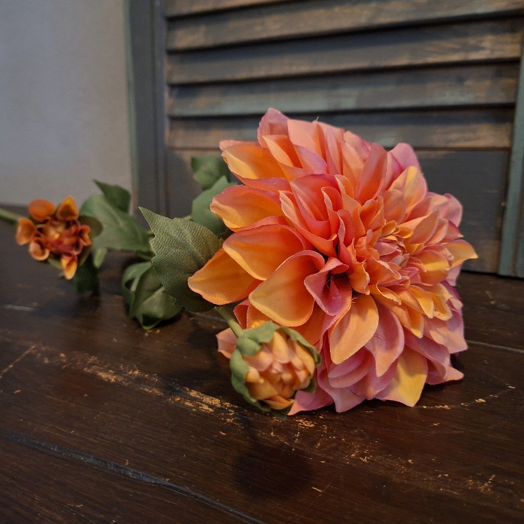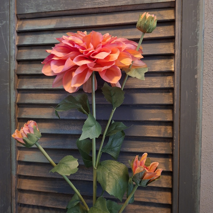 Grande, de perfecte naam voor deze Sylxz Dahlia zijdenbloem. Want groot is hij inderdaad. In lengte en in formaat van bloem. De zijden Dahlia heeft een frisse Zalm Roze kleur. De grote bloem is opgebouwd uit heel veel kleine blaadjes en is een prachtige toevoeging aan je boeket. Aan een steel zit een bloem volledig in bloei en drie knoppen in verschillende groeistadia.