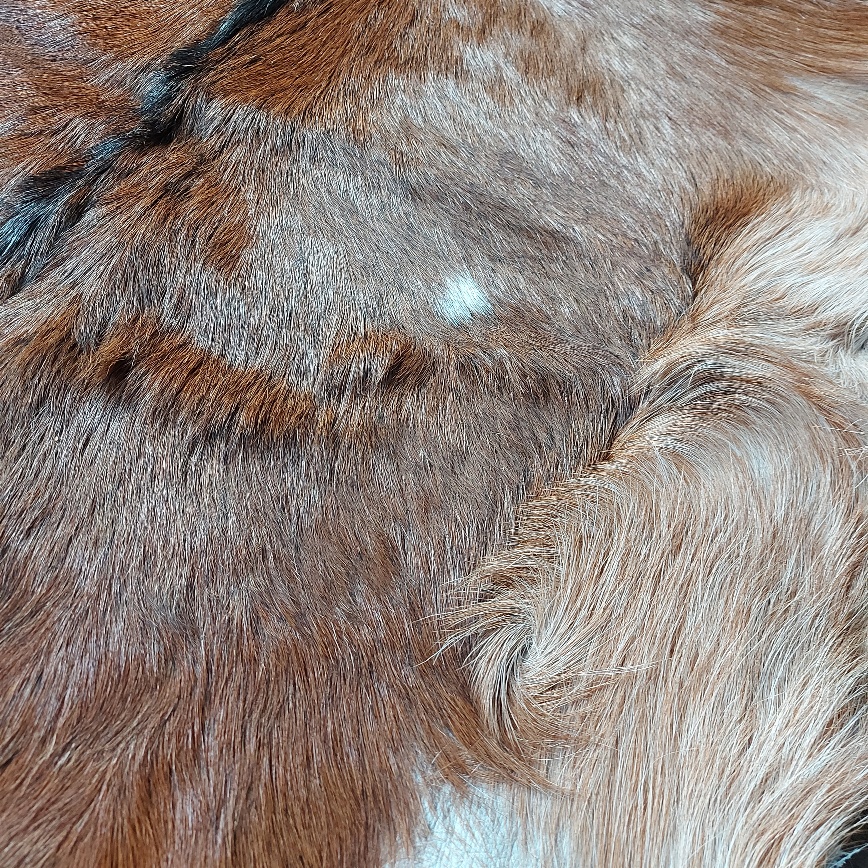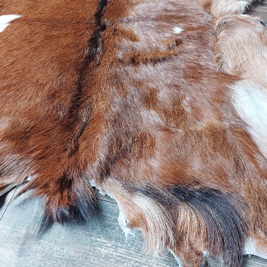 Dit geitenvacht is gemaakt van een vacht van een donker bruine geit. Het geitenvel heeft een licht bruine kleur, met lichte flanken. Het vacht is geen kunstvachtje, maar een echte vacht. Het vacht wat je op de foto ziet is het vacht wat je geleverd krijgt. Zo weet je precies wat je kan verwachten.