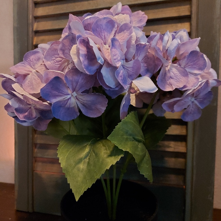 De Countryfield Hortensia kunstplant heeft 4 grote paarse bloemen. De plant zit in een zwarte pot. De bloemen zitten op verschillende hoogtes aan de plant, dit zorgt voor een mooi natuurlijk effect.