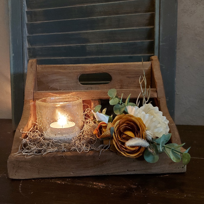 Een gruttersbak is heel veelzijdig te gebruiken. Een perfect opbergmiddel en een prima basis om een mooi landelijk stilleven te creรซren.