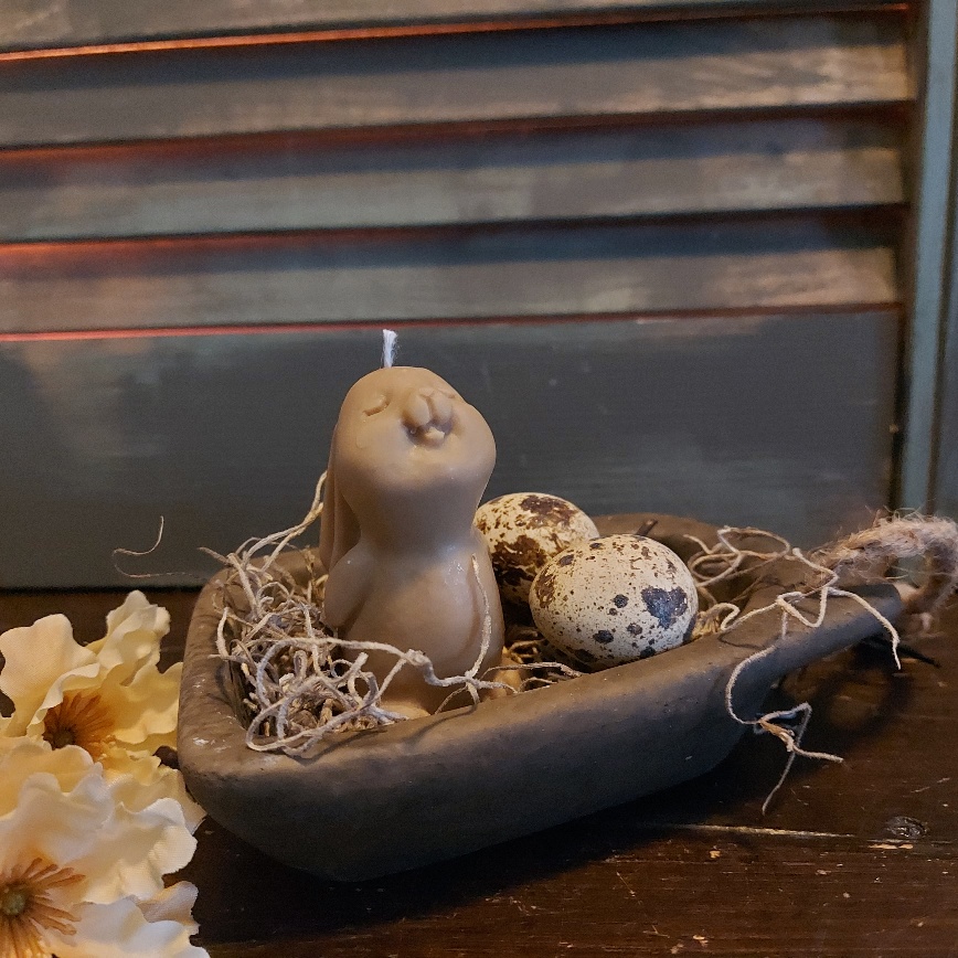 Het lijkt wel of het konijntje de frisse geur van het voorjaar opsnuift! De konijn kaars is met de hand gemaakt en te leuk om niet te hebben. Rondom is het konijntje voorzien van mooie details.