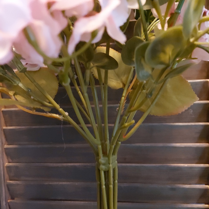 Elke bloem heeft zijn eigen steel en zijn in het midden bij elkaar gebundeld. In totaal zitten er 9 takken in het boeket kunstbloemen.