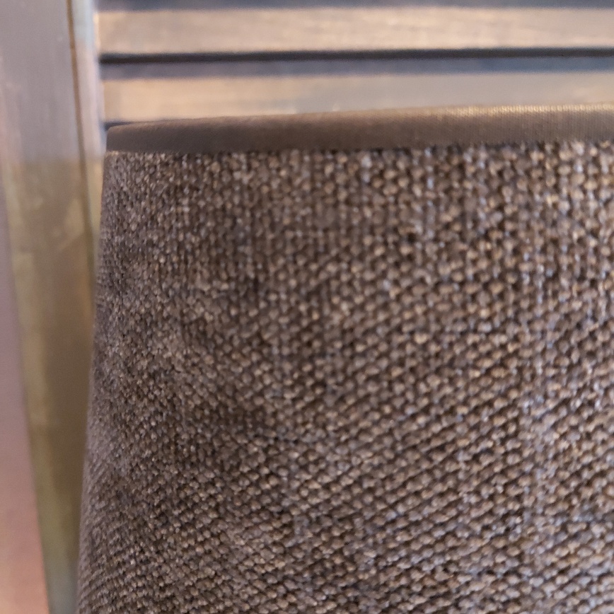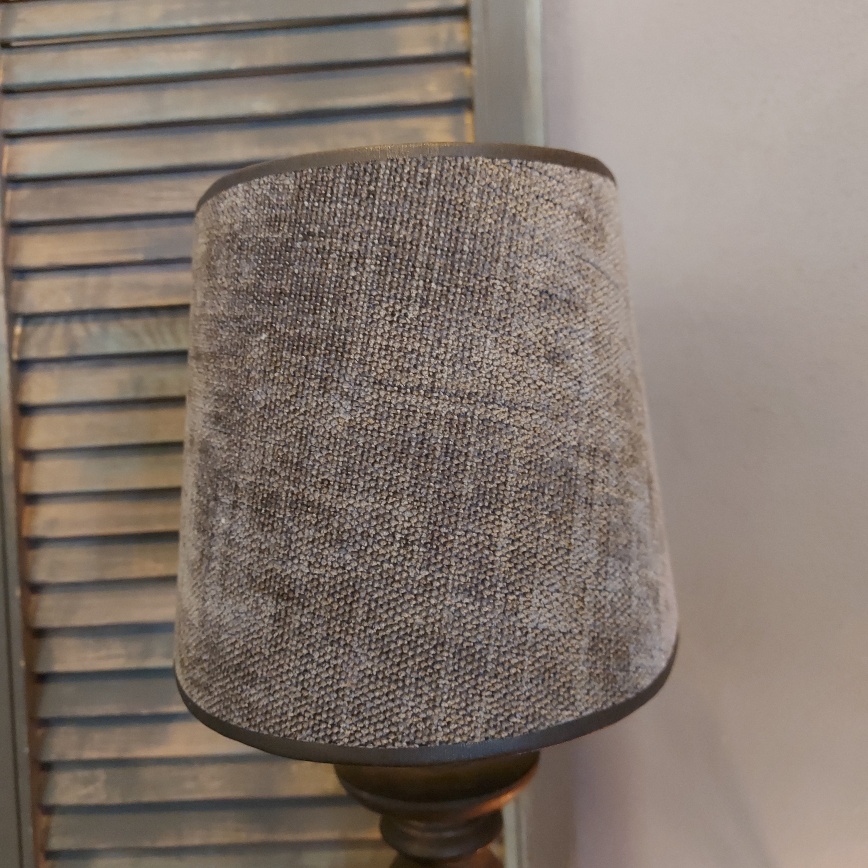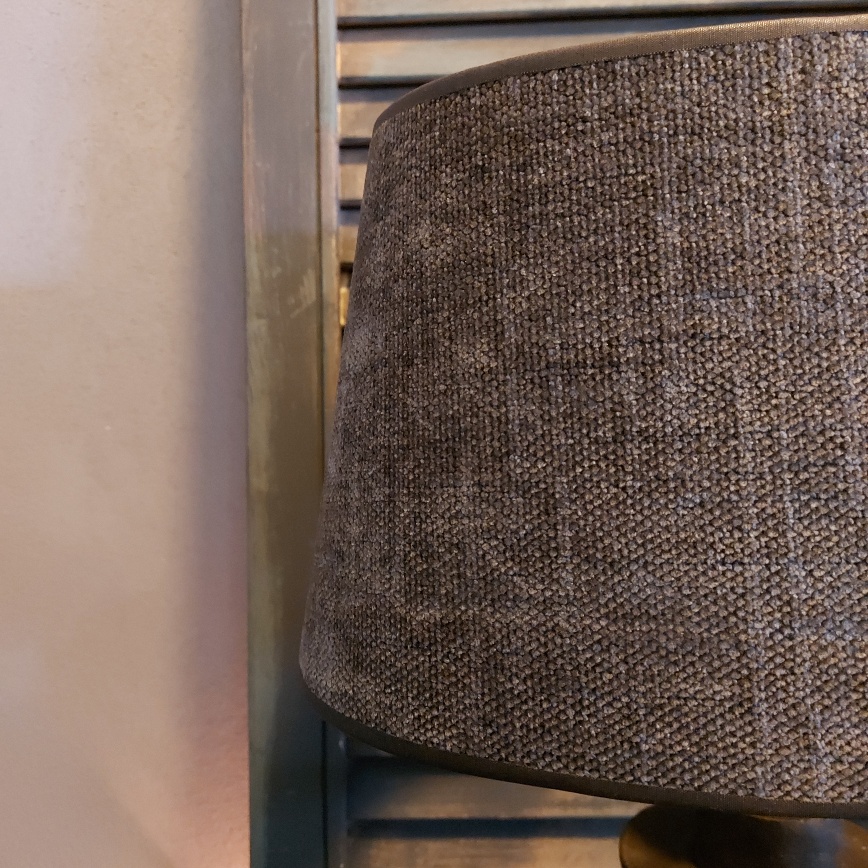 De linnen lampenkap is uitgevoerd in een ovaal model. De lampenkap is gemaakt van donkerbruin linnen en aan de binnenzijde glad afgewerkt. De grof geweven stof van de lampenkap is uitgevoerd in verschillende natuurlijke tinten bruin.