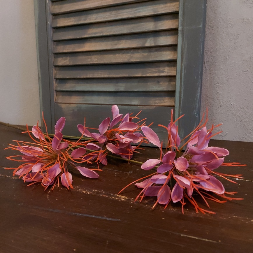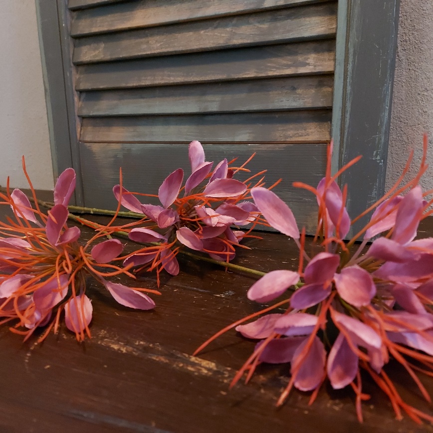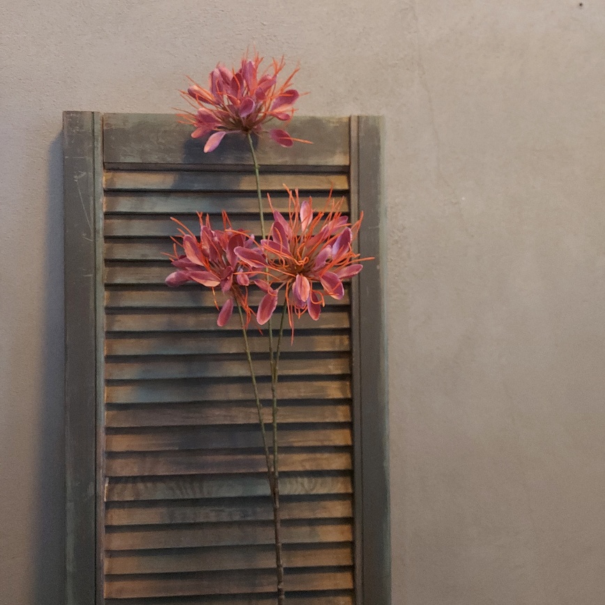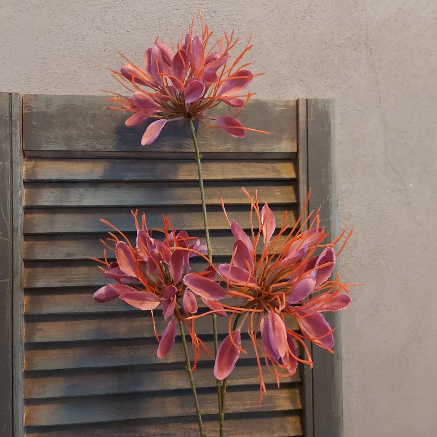 Deze Countryfield Lycoris zijdenbloem heeft drie grote bloemen aan de steel zitten. De bloemen van de spinlelie kunstbloem hebben een fuchsia rode kleur. De bloemsteel spits zich op in 3 zijtakken, aan elke tak zit een bloem. De bloemen zitten op ongelijke hoogte, dit zorgt voor een mooie opvulling in je boeket.