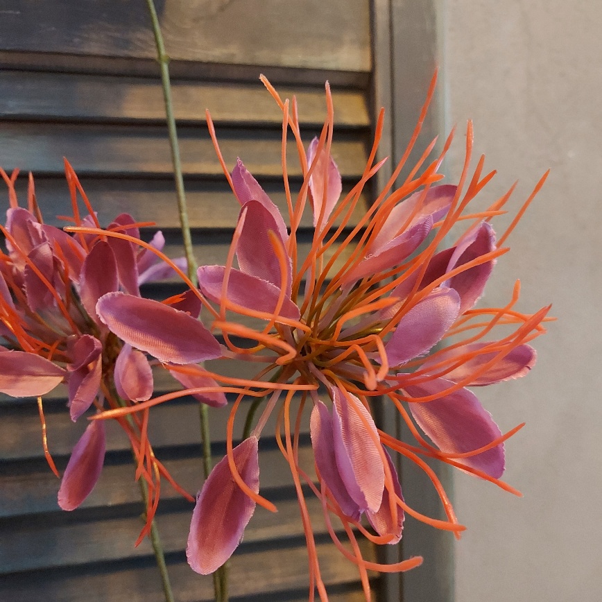 De bijzonder vormgegeven bloem van de Spinlelie valt gelijk op als je hem toevoegt aan een boeket zijden bloemen.