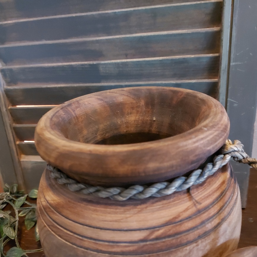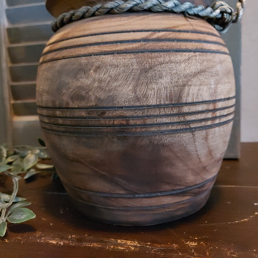 In het donkerbruine hout van deze pot komen de nerven en knoesten prachtig tot hun recht! Dit is nu echt zo een decoratie waar je in รฉรฉn oogopslag verliefd op wordt.
