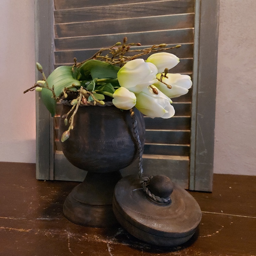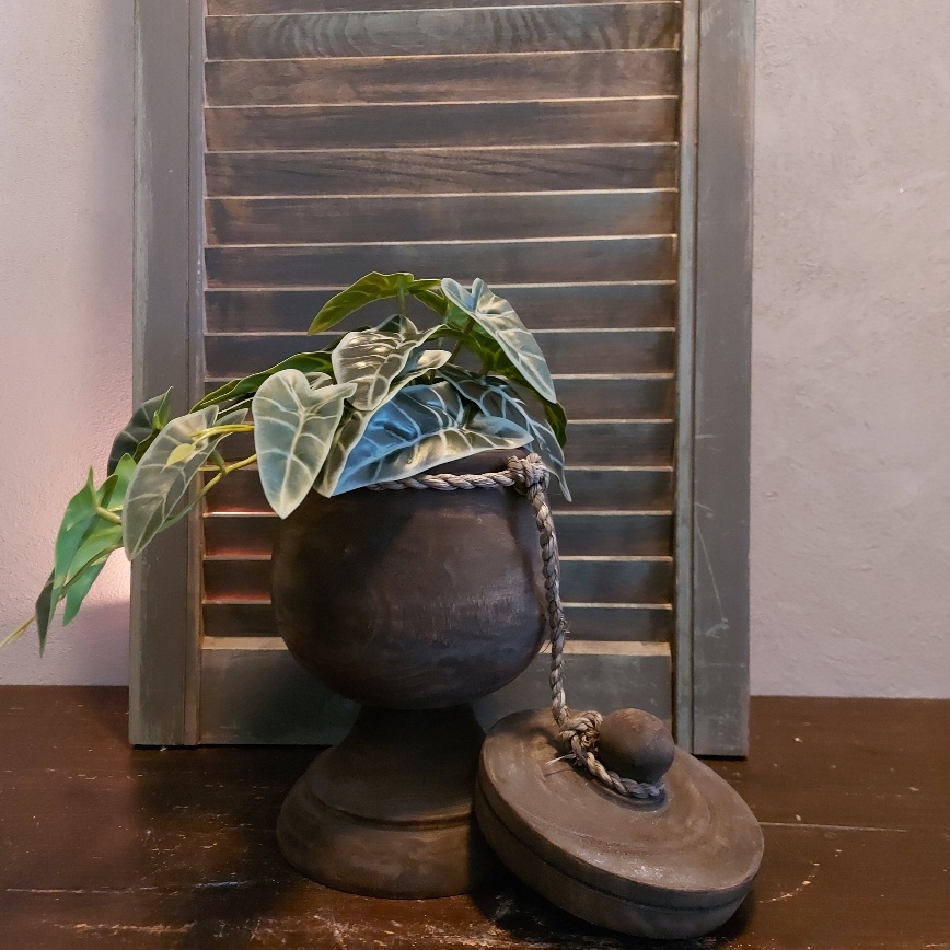 In het donkerbruine hout van deze pot komen de nerven en knoesten prachtig tot hun recht! Dit is nu echt zo een decoratie waar je in รฉรฉn oogopslag verliefd op wordt.
