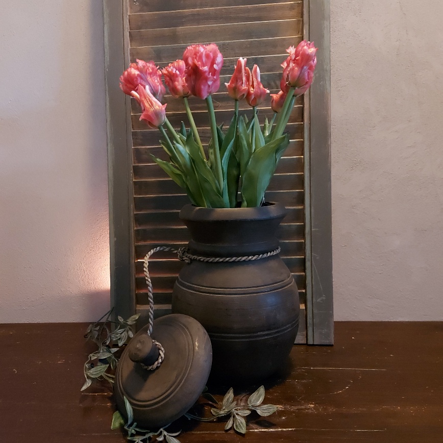 In het donkerbruine hout van deze pot komen de nerven en knoesten prachtig tot hun recht! Dit is nu echt zo een decoratie waar je in รฉรฉn oogopslag verliefd op wordt.