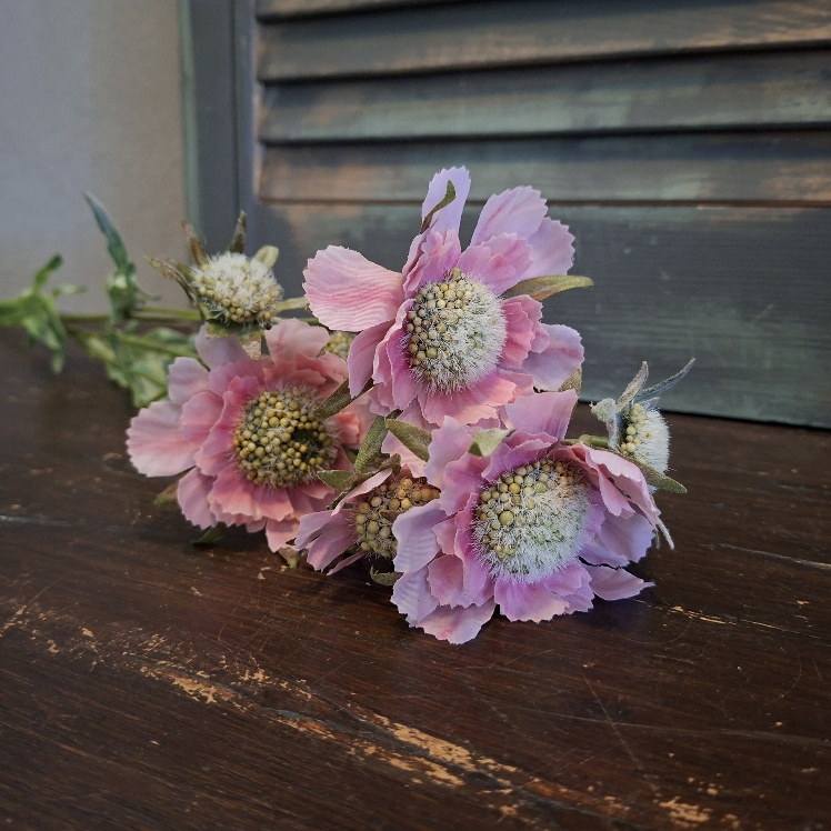 De roze bloemen van de Sylxz Scabiosa hebben een zijdezacht hartje. Scabiosa is een echte zomerbloeier en mag zeker niet ontbreken in een zomers boeket zijdenbloemen. De bloem is in verschillende kleuren verkrijgbaar.
