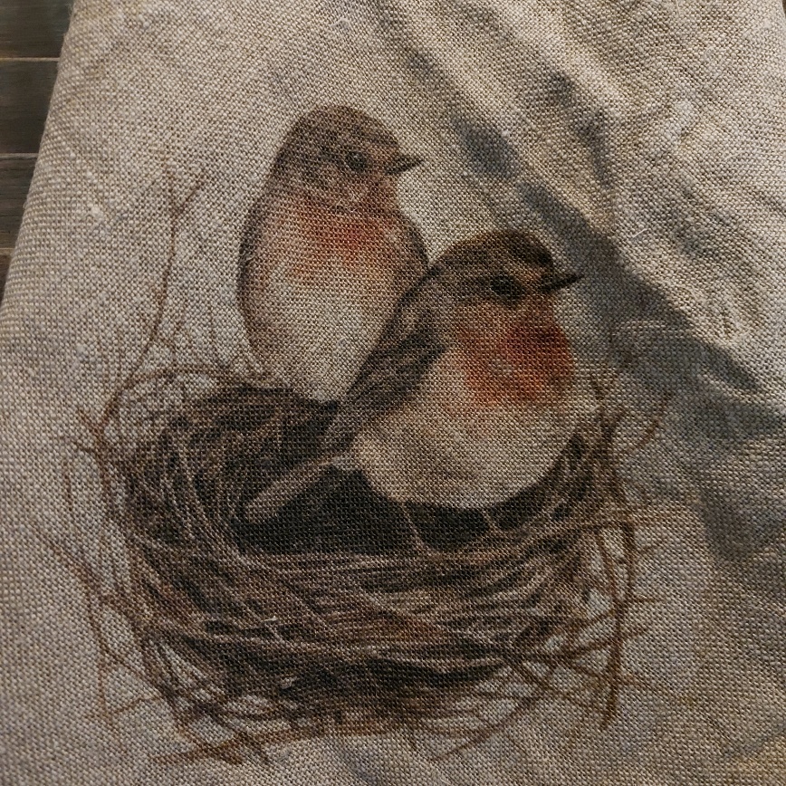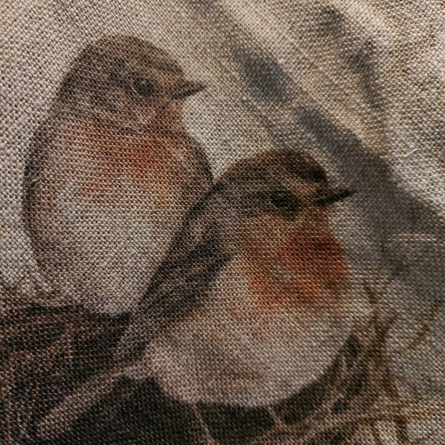 Op dit prachtige shabby doek staan twee roodborstjes afgebeeld. De afbeelding is op het linnen doek gedrukt. Het linnen kleed heeft een afmeting van 45 x 45 cm. De shabby doeken hebben een mooie doorleefde uitstralingen en zijn niet voorzien van een zoom. Dit zorgt voor een mooi rafelig effect. De doeken zijn gemaakt van 100% grof shabby naturel kleurig linnen. De roodborstjes op dit shabby doek zijn in natuurlijke kleuren afgebeeld. Dit zorgt voor een perfecte combinatie met het linnen.