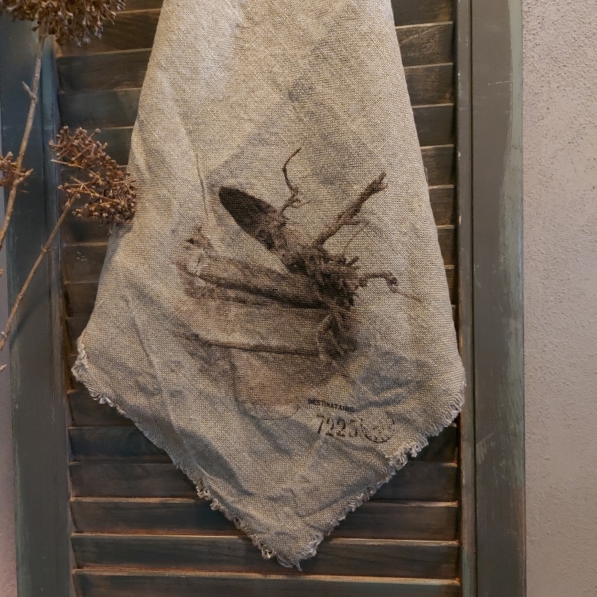 Een shabby doek is heel veelzijdig te gebruiken. Vaak zie je ze gedrapeerd over een ladder of luikje. Maar ook een een oude trog of olijfbak komt een shabby doek prachtig tot zijn recht. Je kunt de doek in een punt vouwen en hem uit een kruik laten komen. Hoe ‘rommeliger’ je het doek decoreert hoe mooier het tot zijn recht komt. Vouwen en rafels zijn dus zeker ook toegestaan.