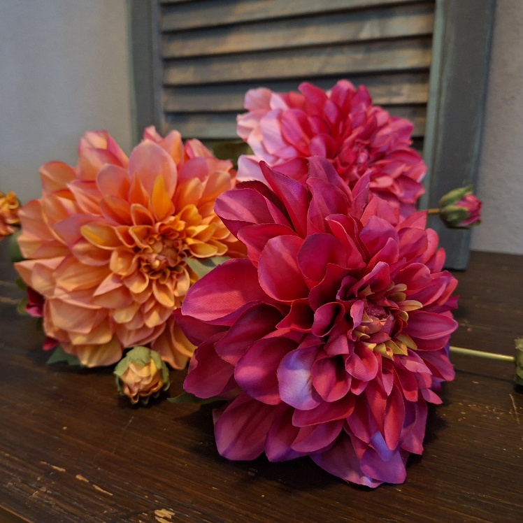 Combineren de Sylxz Dahlia Grande met andere kunstbloemen uit ons assortiment om je eigen persoonlijke boeket te creรซren. Maar ook een enkele tak in een hoge smalle fles is prachtig.