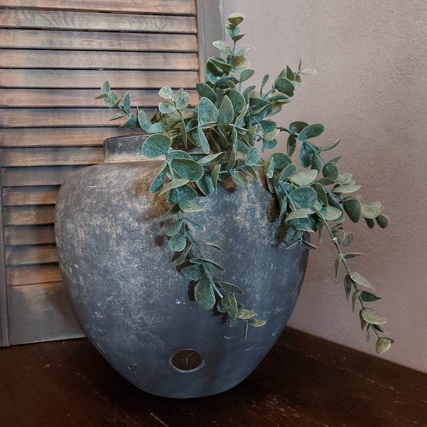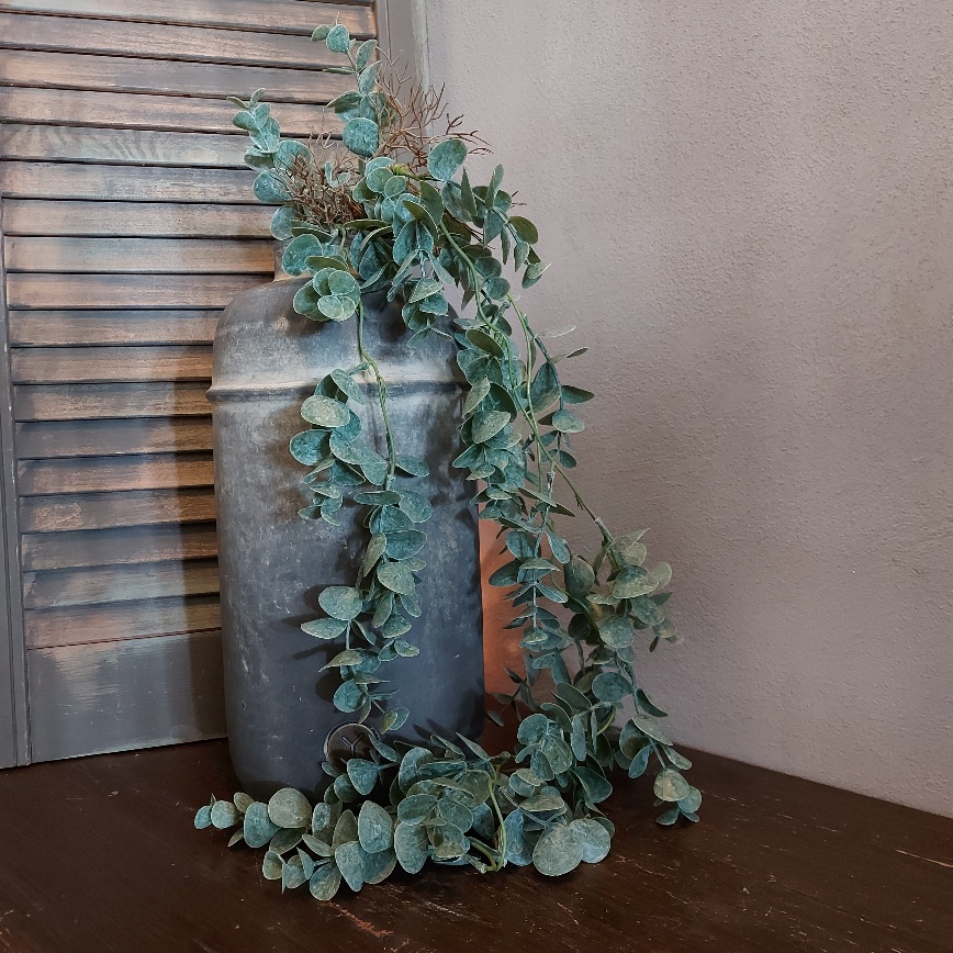 Je kan er voor kiezen om deze Sylxz Eucalyptus als hangplant te gebruiken, maar ook in gedrapeerd over de rand van een grote bolvaas of kruik komt hij prachtig tot zijn recht.