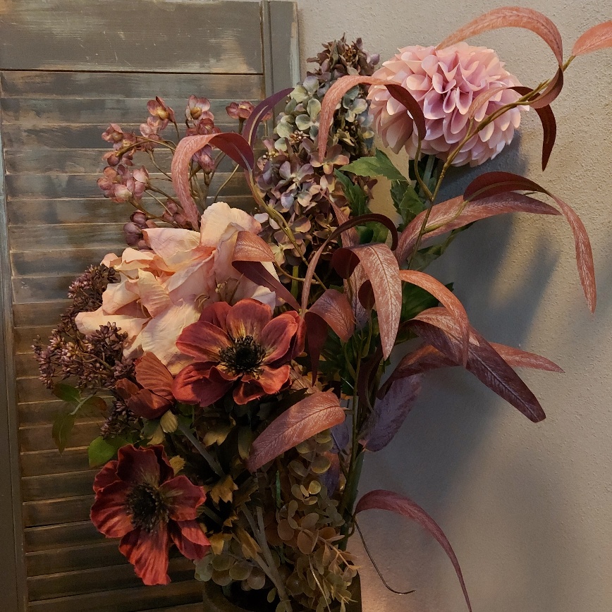 Diepe warme kleuren vormen de basis van het maandboeket van November. Dit voordeel boeket zijden bloemen is speciaal voor jou samengesteld uit de nieuwste bloemen uit de collectie van Brynxz en Countryfield. Van dit prachtige boeket ga je jaren lang plezier hebben.